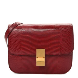 CELINE CELINE Lizard Medium Classic Box Flap Bag Ruby