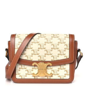 CELINE Calfskin Triomphe Canvas Teen Triomphe Bag Tan