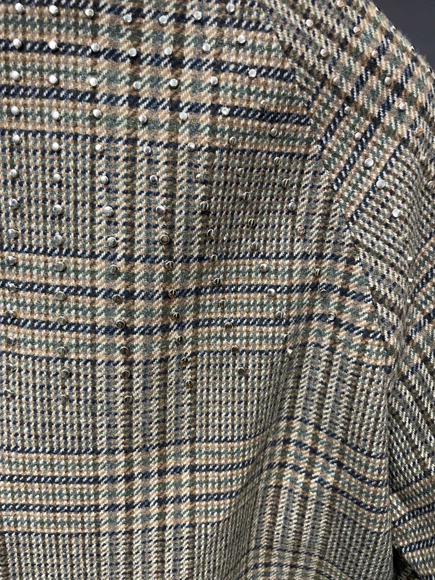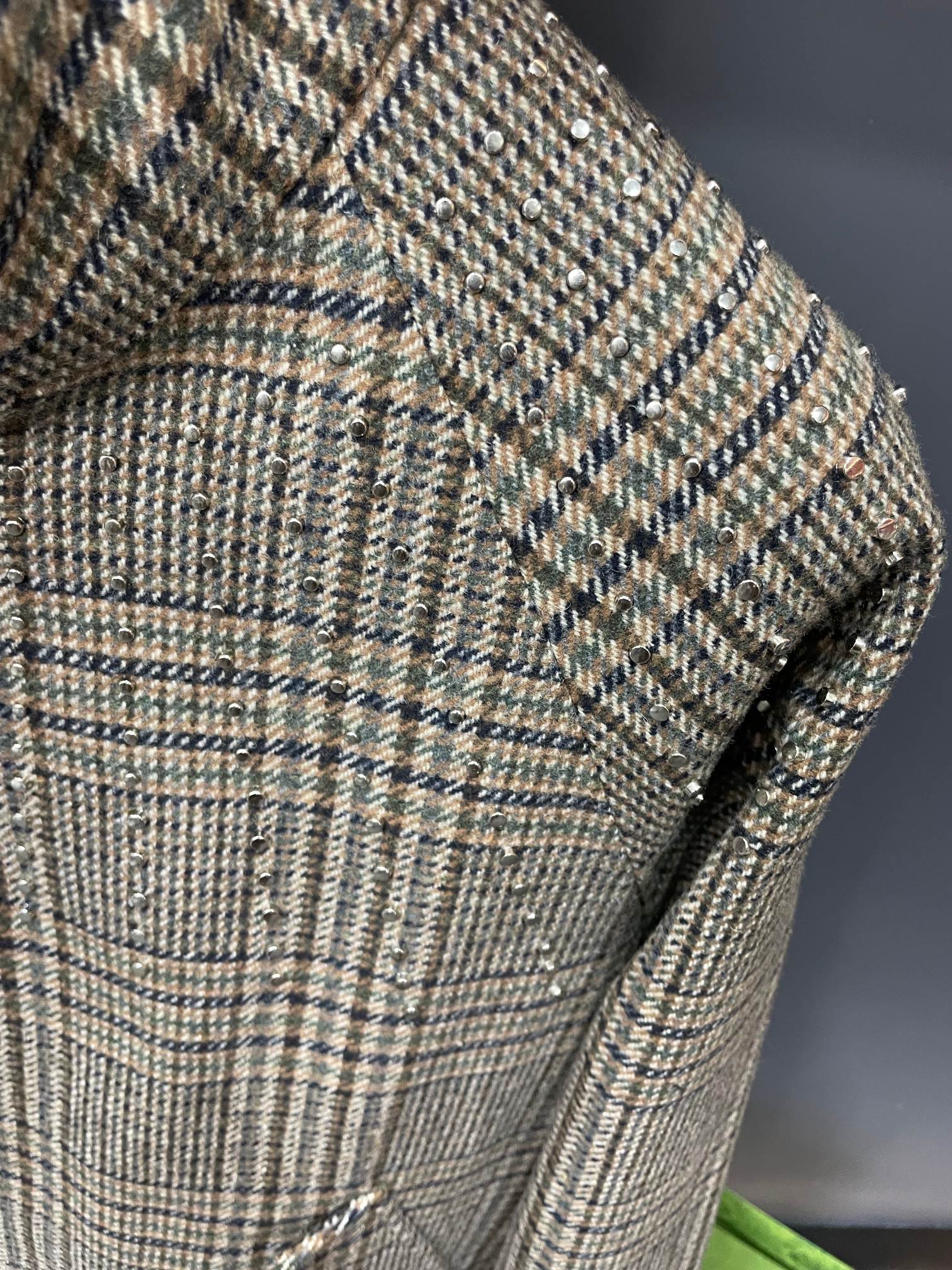 This coat adopts a stand-up collar, which can not only effectively resist the cold wind in autumn and winter, but also highlight your elegant temperament and confident style. The use of retro checkered cashmere is like a classic mark left by the brushstrokes of time on the fabric, and the delicate texture interweaves the charm of time and eternal charm.