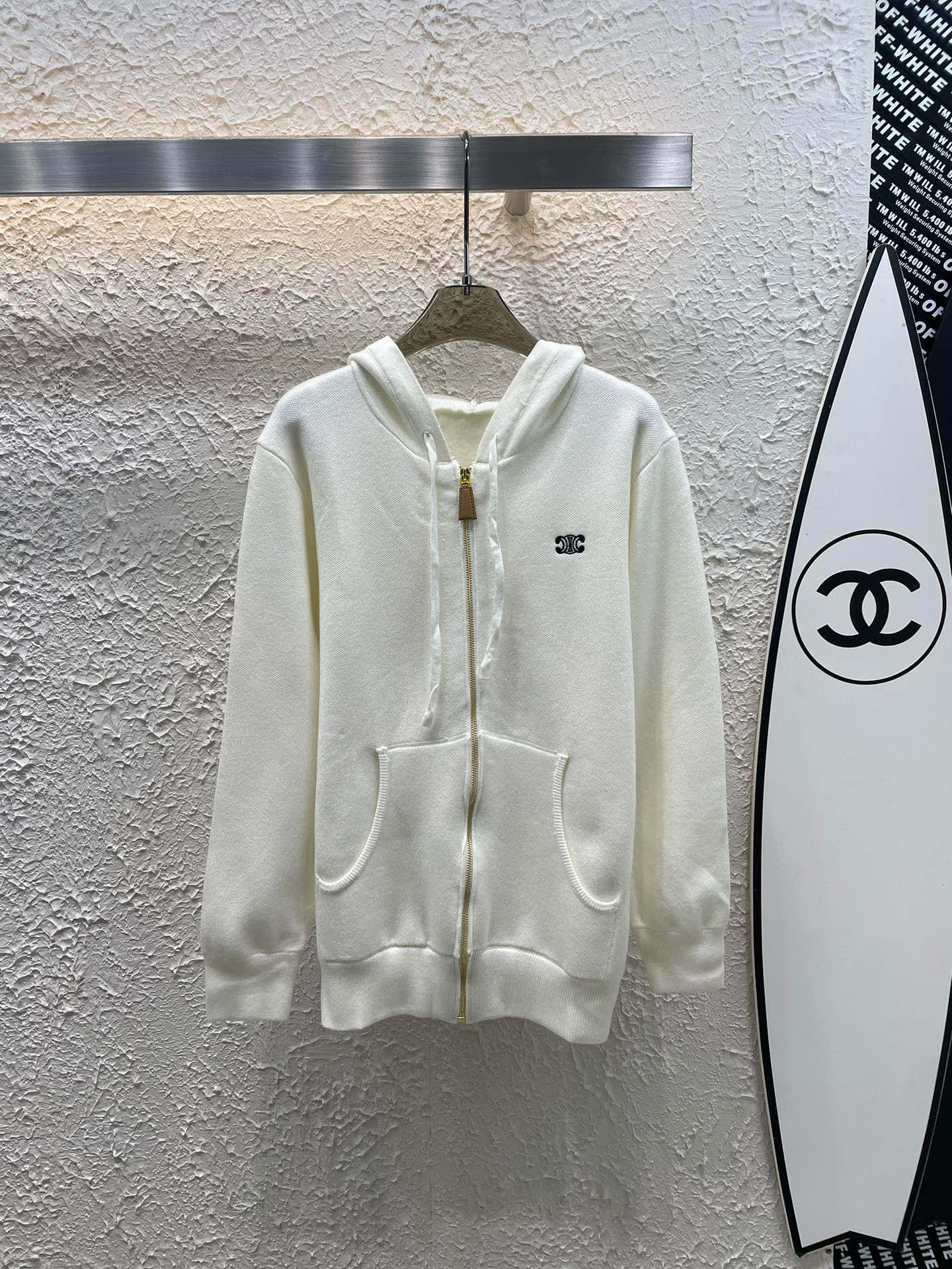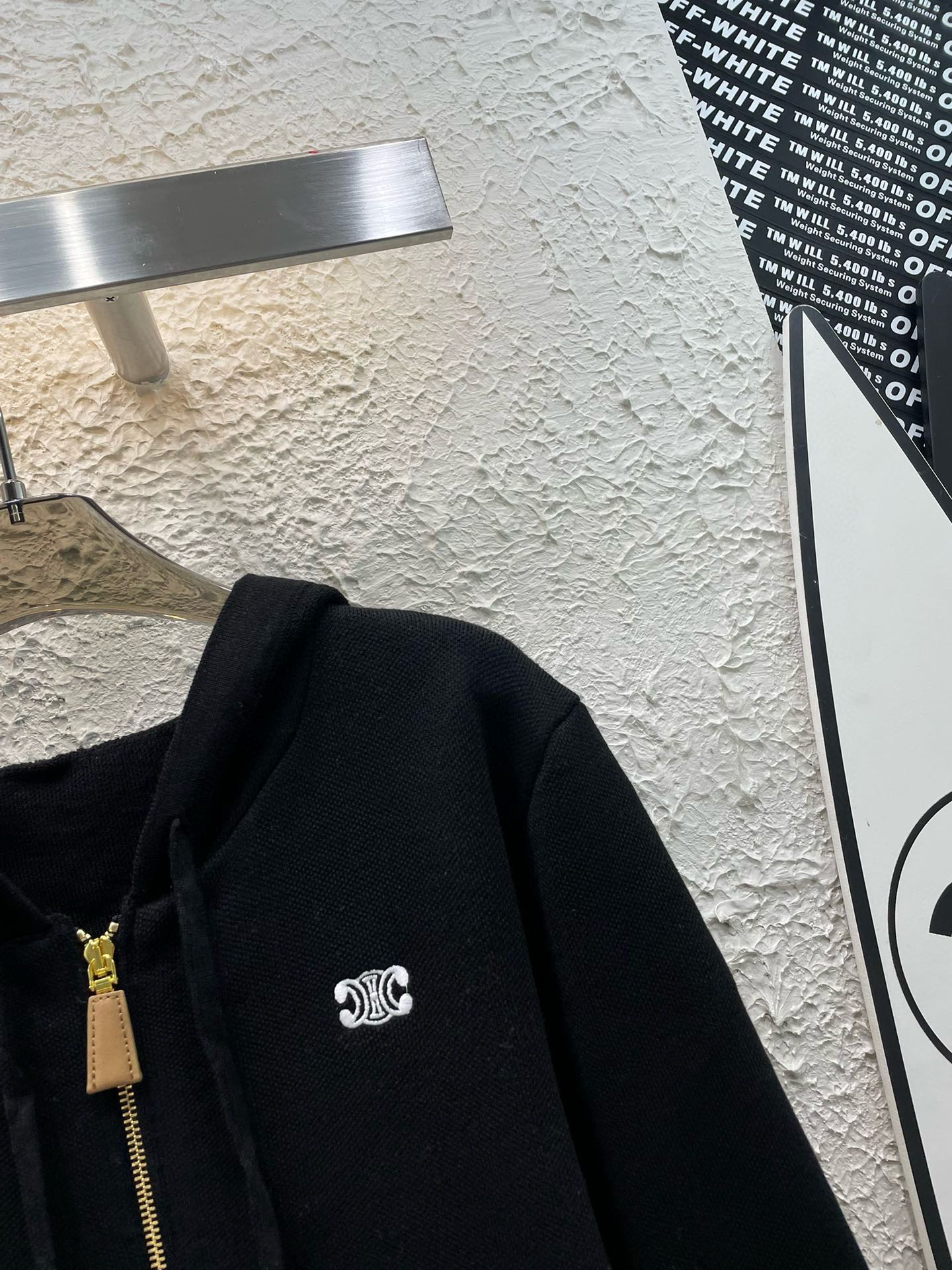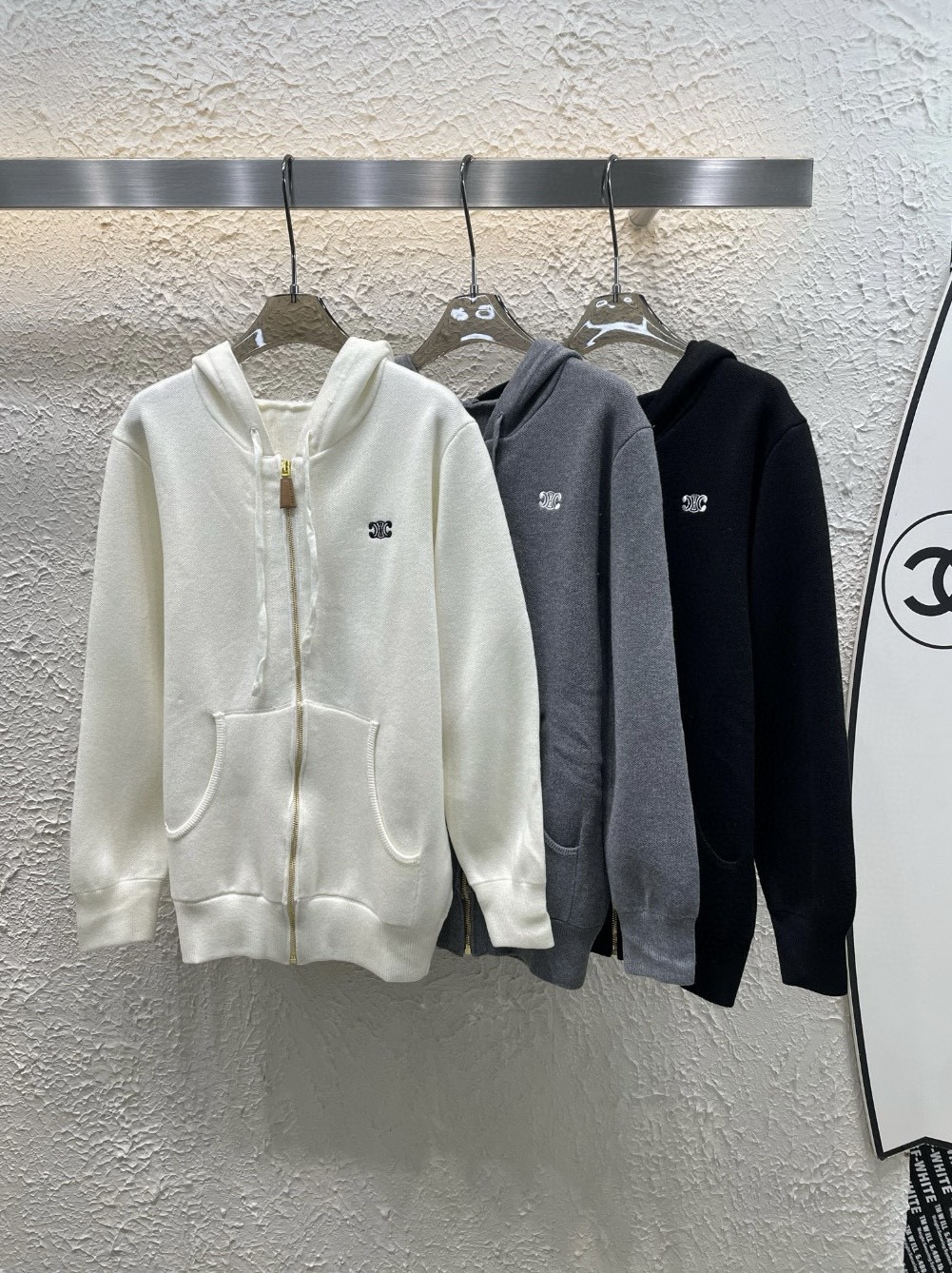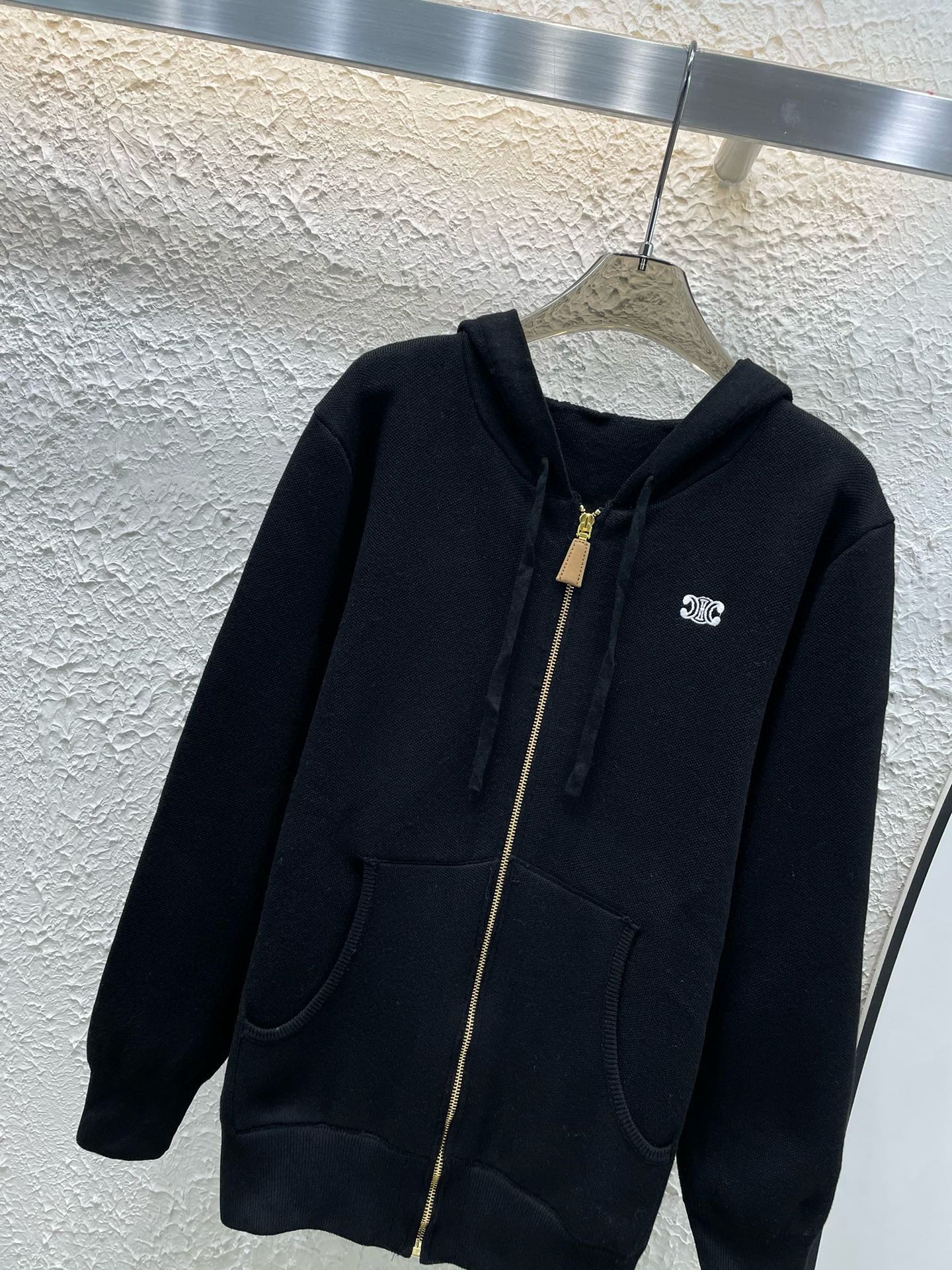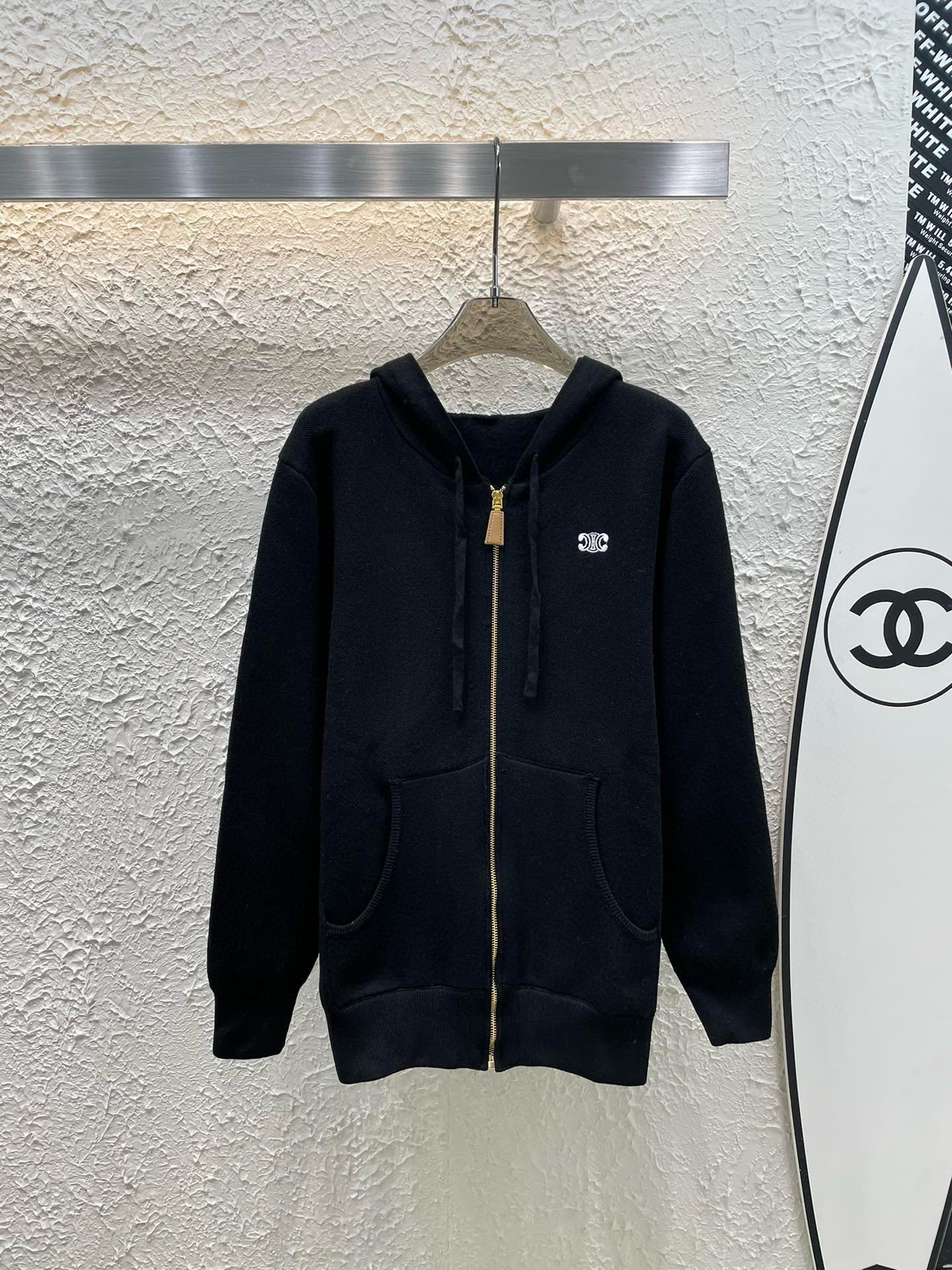 Be the first to review “Celine Arc de Triomphe embroidered small logo hooded long-sleeved zipper knitted sweater cardigan jacket”