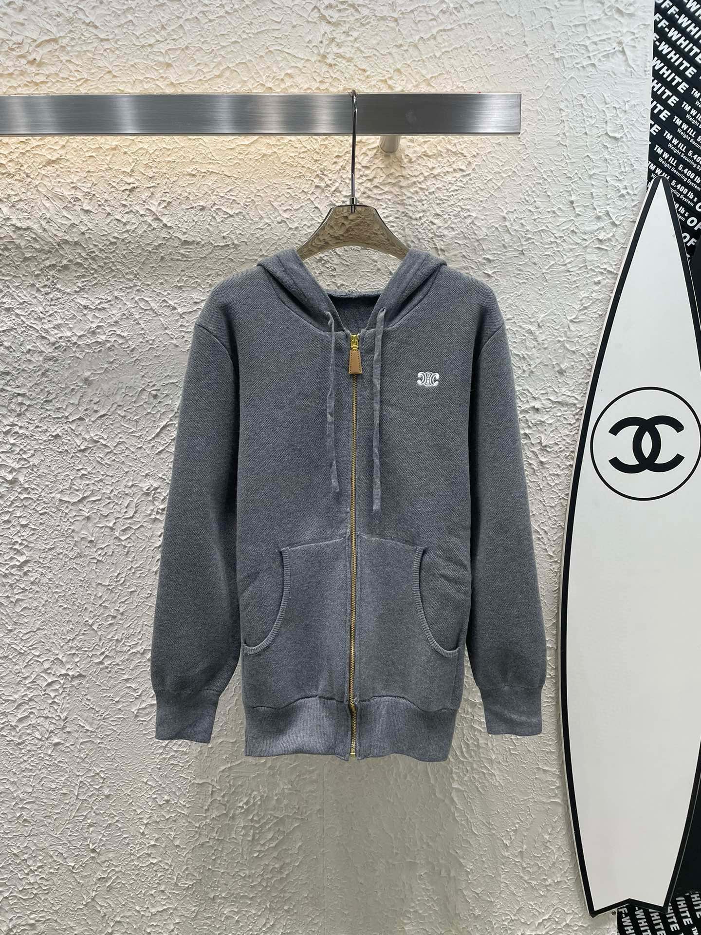 Celine Arc de Triomphe embroidered small logo hooded long-sleeved zipper knitted sweater cardigan jacket