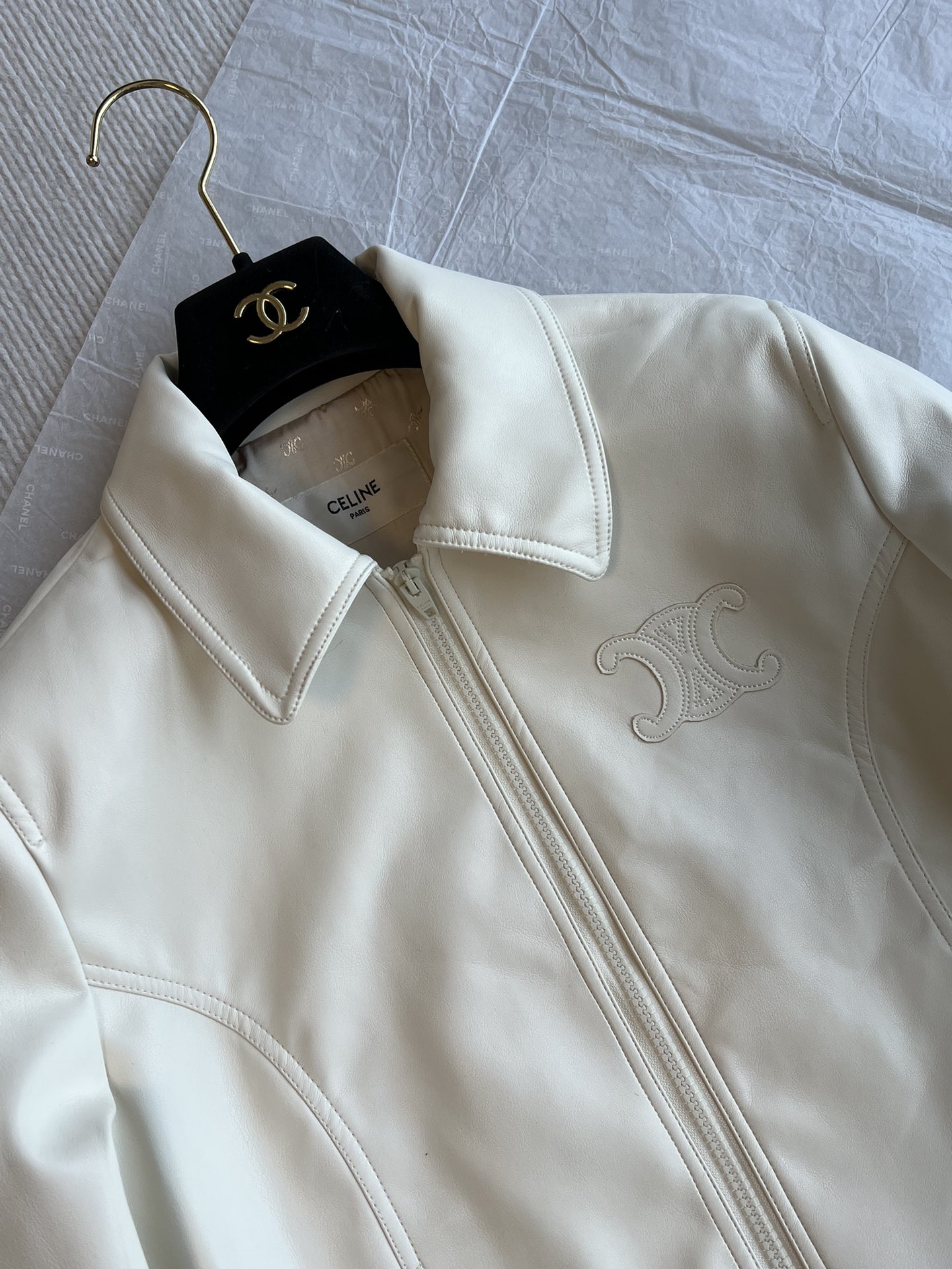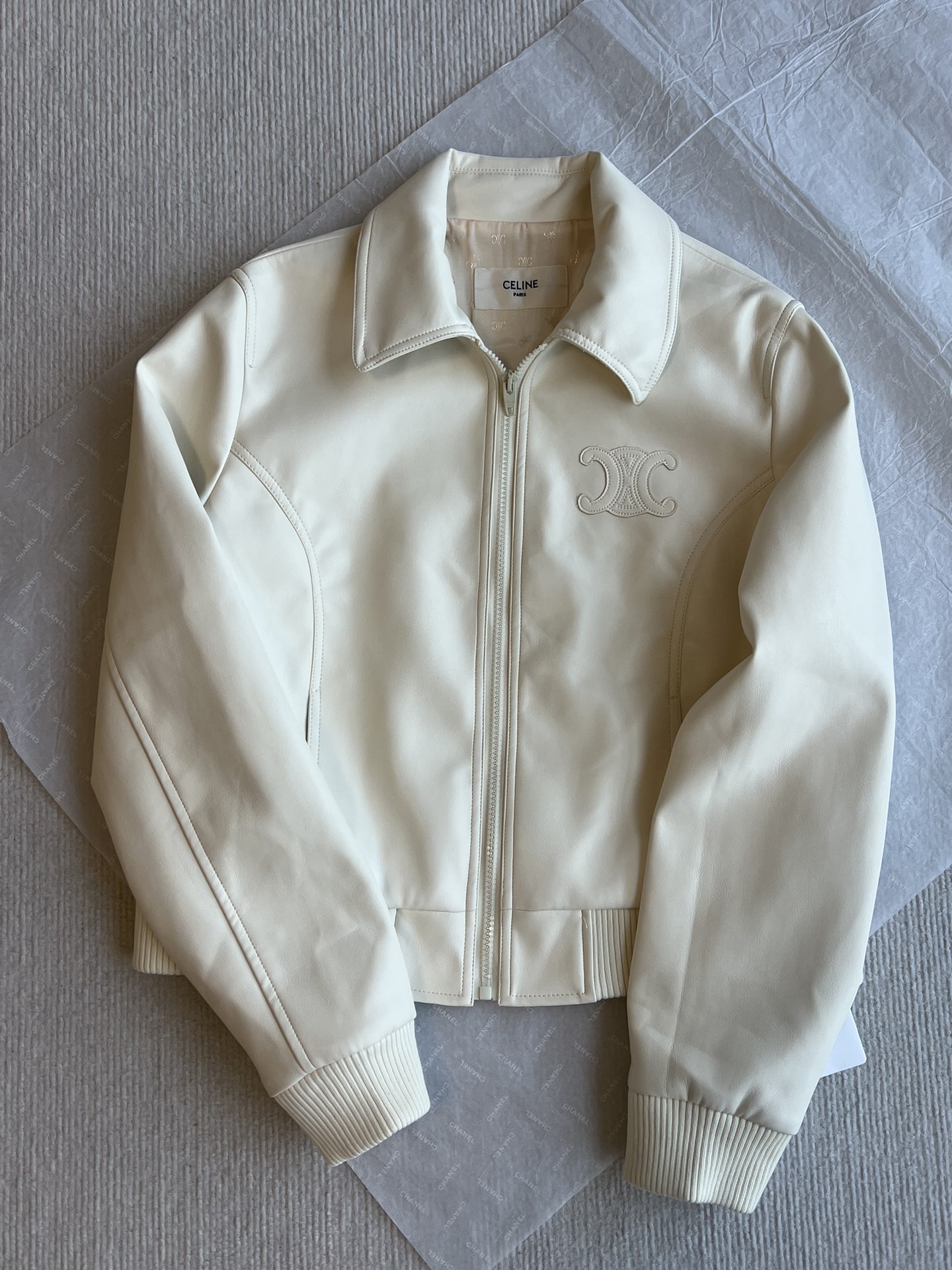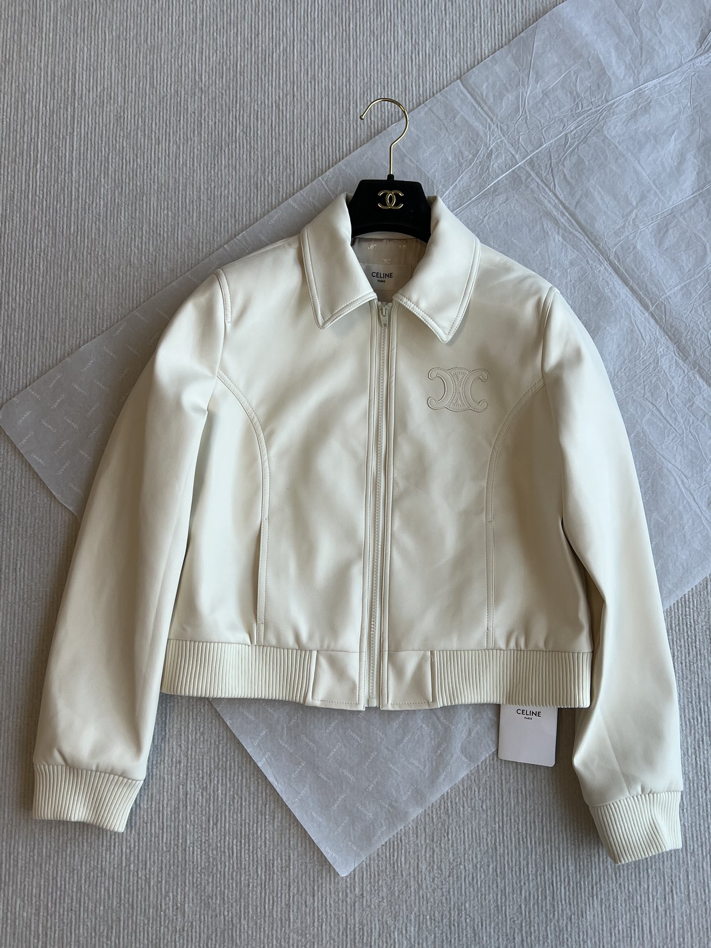 Be the first to review “Celine Autumn and winter new style lapel Arc de Triomphe logo short leather jacket”