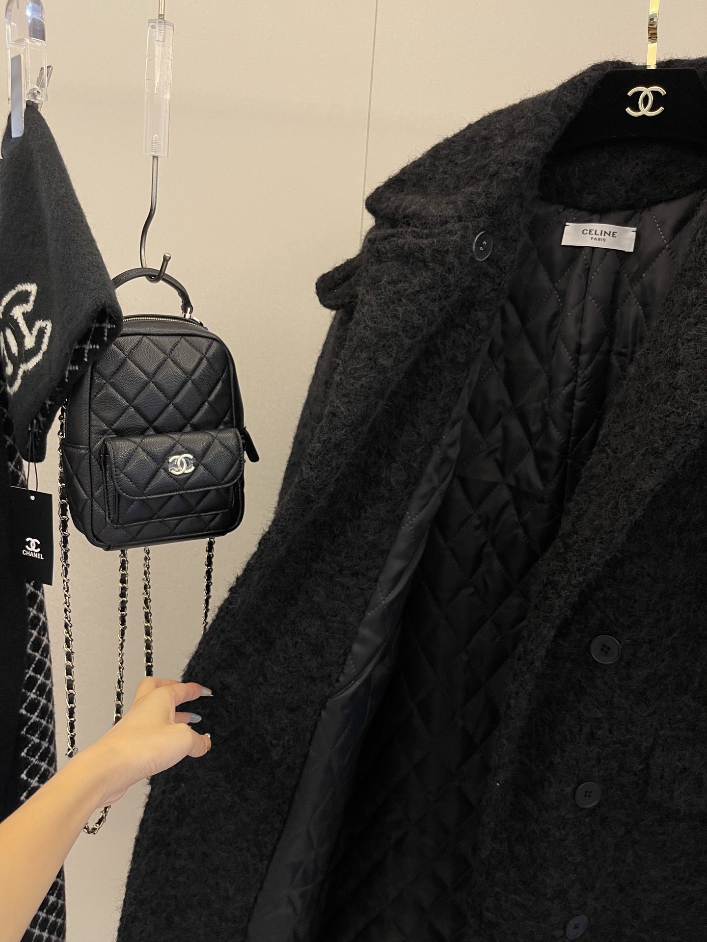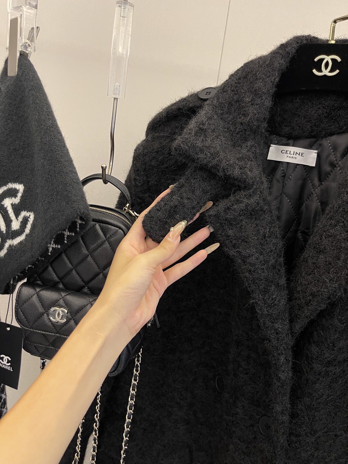 Be the first to review “Celine black wool/rabbit fur blend long coat”