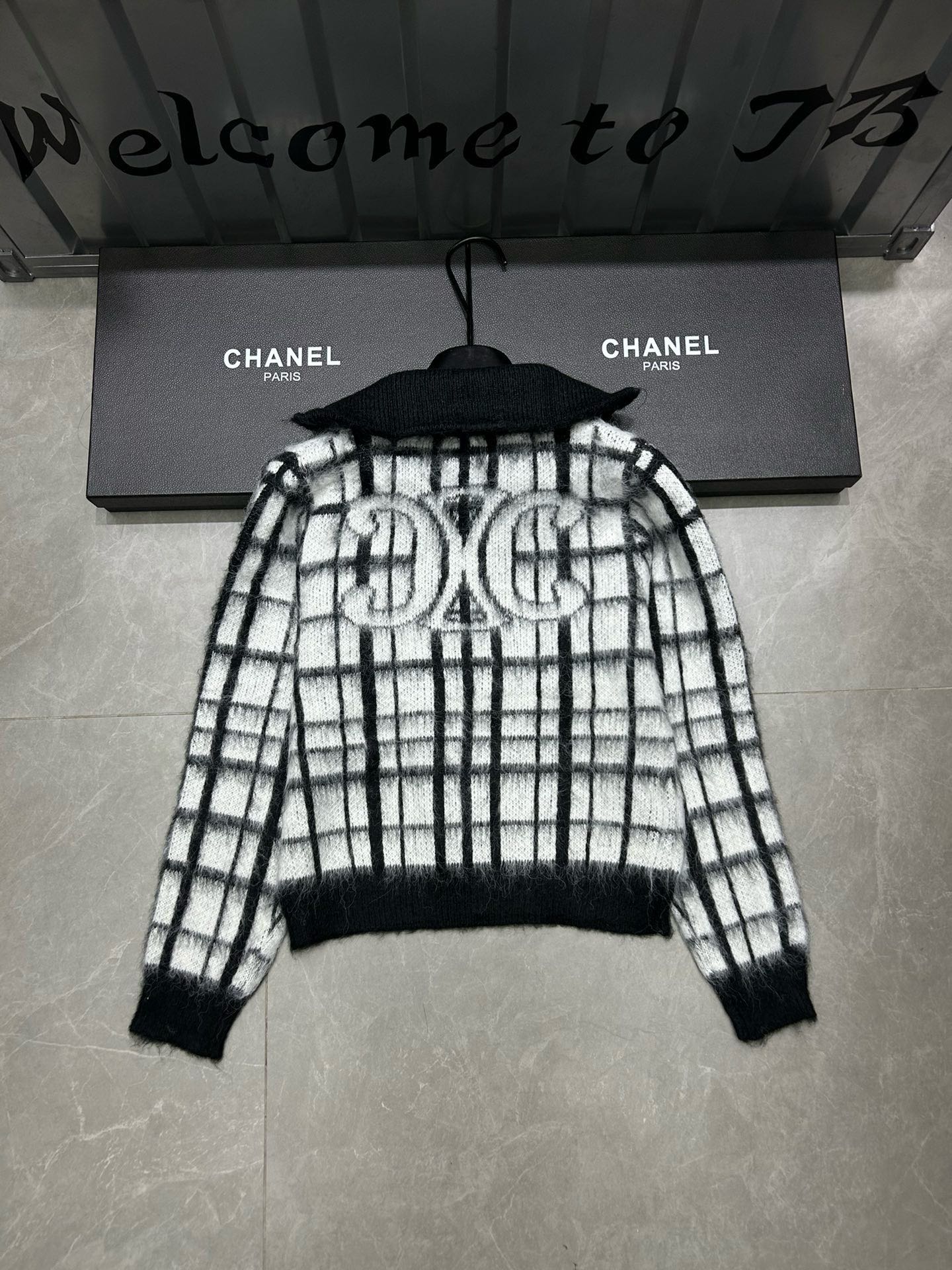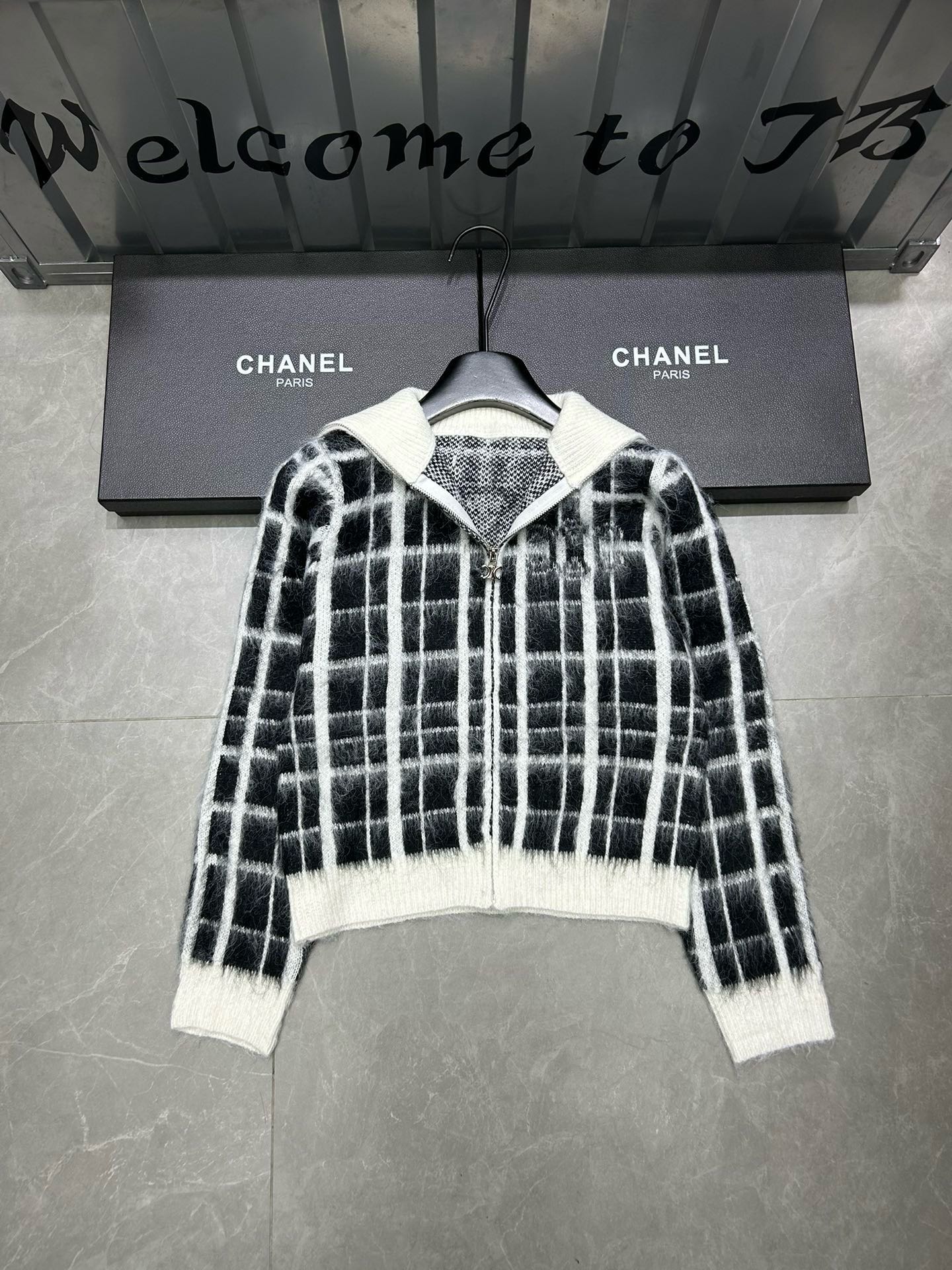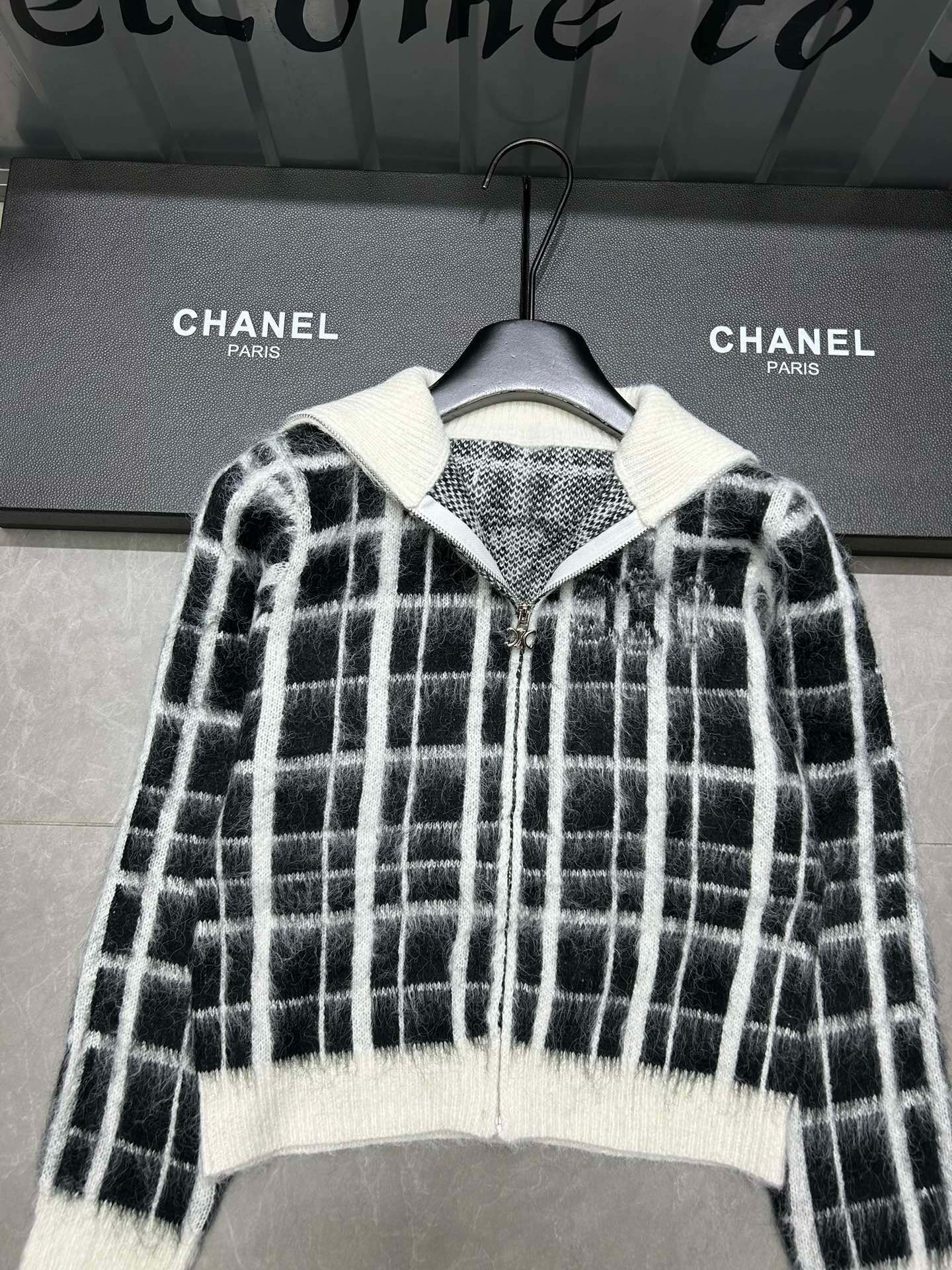 Be the first to review “Celine front and back Arc de Triomphe jacquard plaid mohair lapel long-sleeved zipper knitted sweater cardigan jacket”