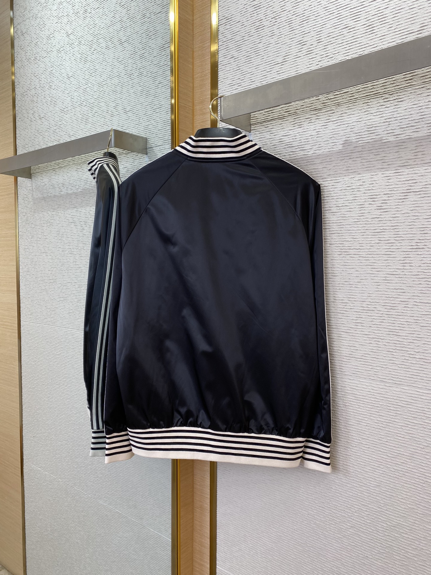 Made of customized nylon fabric, with letter logo on the chest, striped thread at the neckline, sleeves and hem, it can be matched with the bottoms of the same season to create a fashionable look, suitable for various occasions, customized accessories