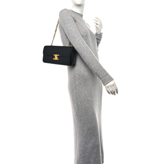 Be the first to review “CELINE Shiny Calfskin Triomphe Chain Shoulder Bag Black”