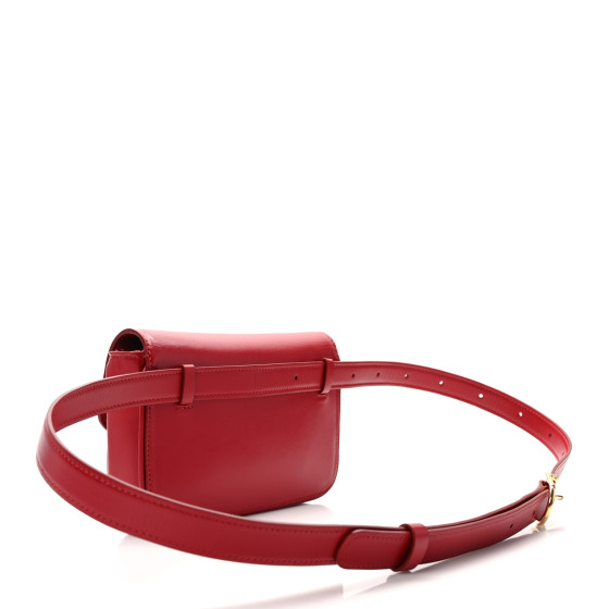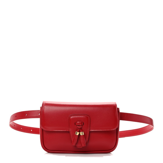 This is an authentic CELINE Smooth Calfskin Tassel Belt Bag in Red. This stylish belt bag is crafted of luxuriously smooth calfskin leather in red. The bag features a waist strap with a polished gold adjustment buckle and tassels. The front flap opens to a red leather interior with four card slots.