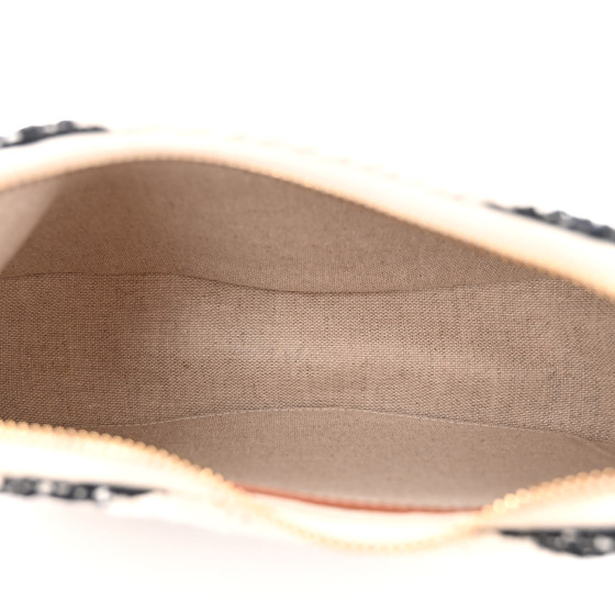This is an authentic CELINE Textile Medium Ava Shoulder Bag in White and Black. This chic bag is crafted of durable canvas with a tan trim. The bag features an adjustable brown leather strap with gold hardware. The top zipper opens to a beige fabric interior with a patch pocket.