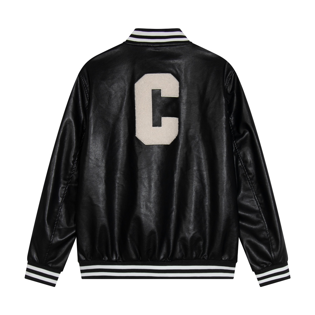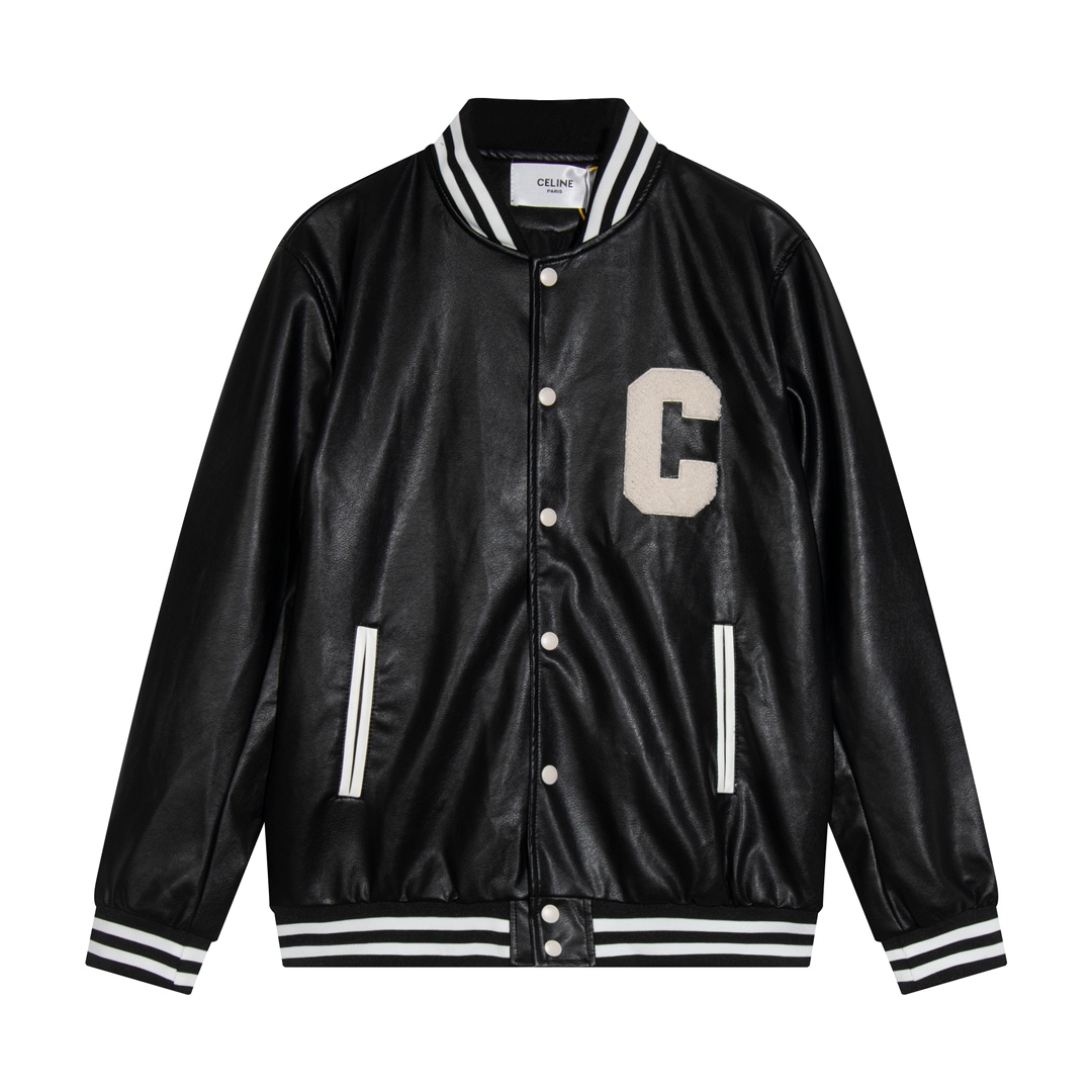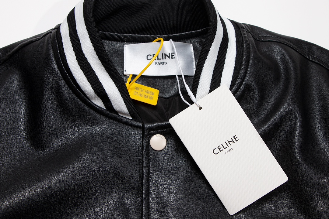 CELINE23 autumn and winter couple motorcycle leather jacket, super heavy craft foam embroidered LOGO leather jacket motorcycle girl favorite windproof and waterproof super warm 1:1 custom mold zipper truly restore ZB magnified details super many real heavy craftsmanship upper body is impeccable