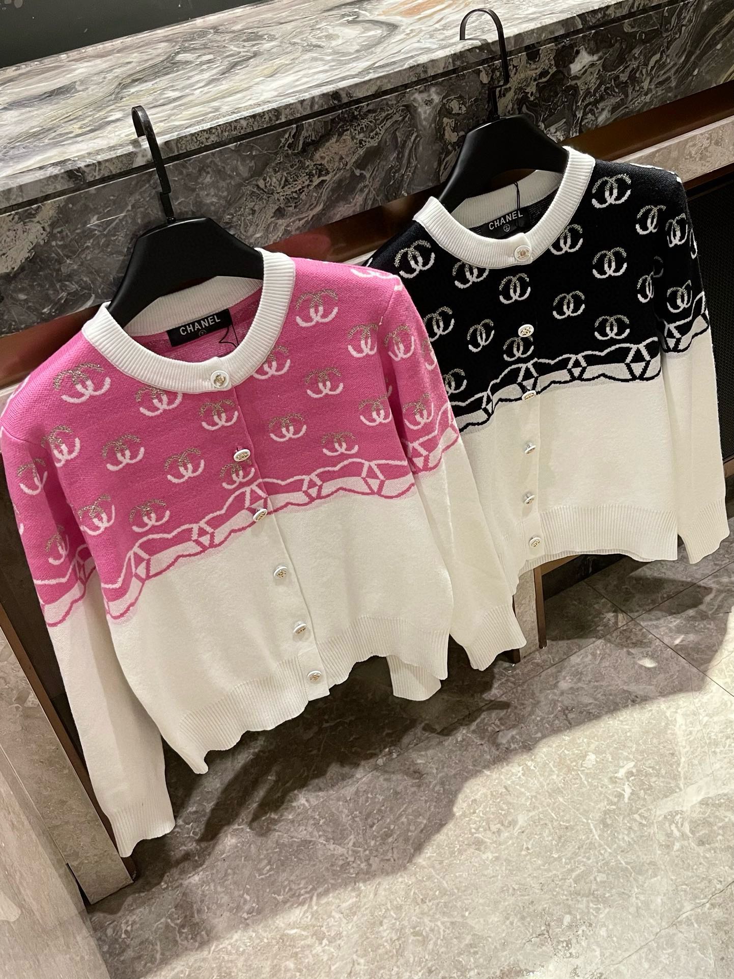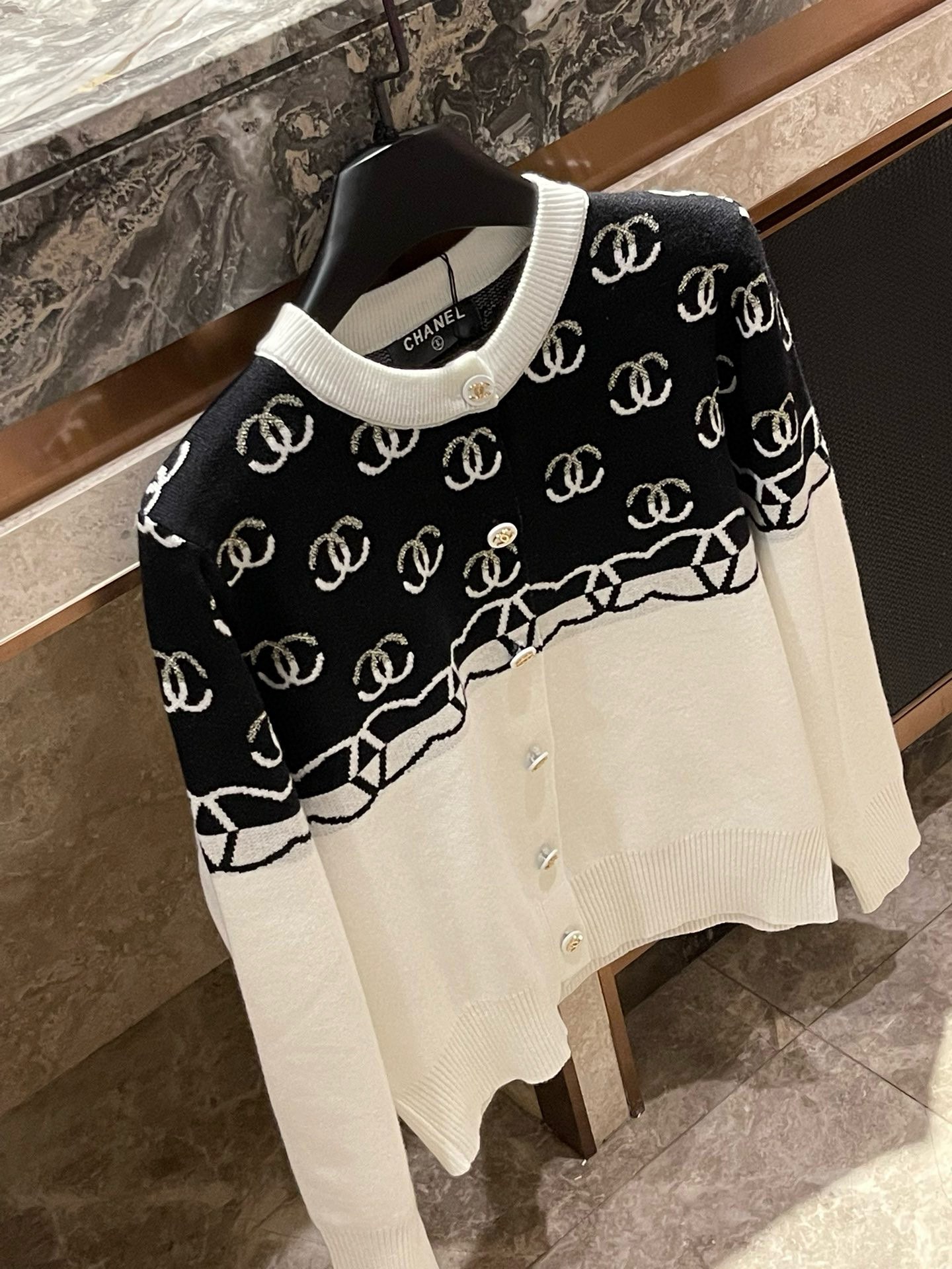 Chanel Chanel Double C Jacquard Custom Buttons Contrast Round Neck Long Sleeve Button Knitted Sweater Cardigan Jacket
