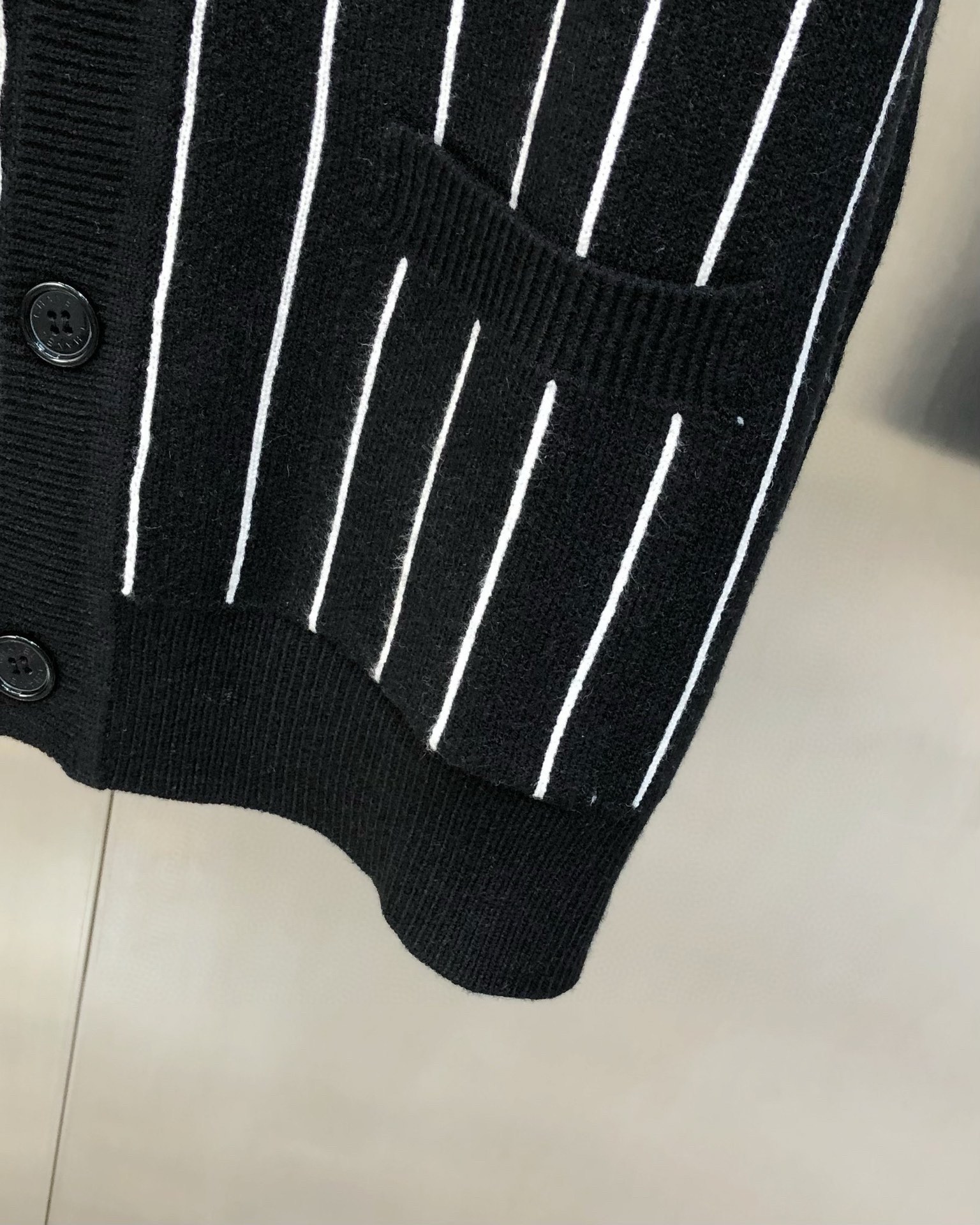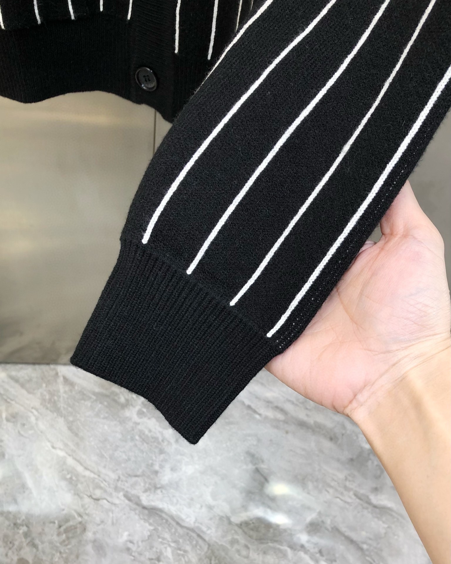 Stylish, elegant, versatile, urban style, full of fashion elements, the vision is quite elegant and fashionable, black and white vertical stripes, embroidered letter logo pattern on the back, custom-made imported 70% wool 30% long-staple cotton blended fabric, custom-made original hardware accessories, soft, delicate and warm, easy to highlight your temperament , the upper body is versatile and looks slimming! The fabrics and factories we choose are all used by first-line brands. The workmanship is fine and the upper body is very handsome. A must-have for men.