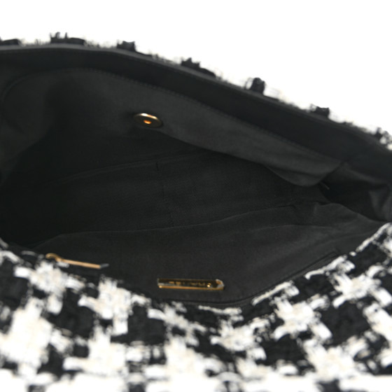 Be the first to review “Chanel Tweed Quilted Large Chanel 19 Flap Black Ecru White”