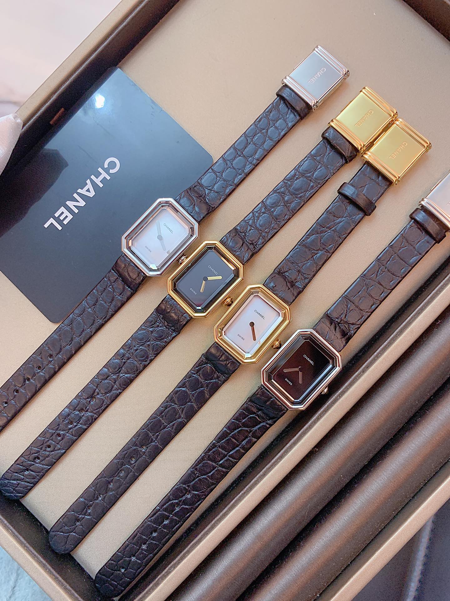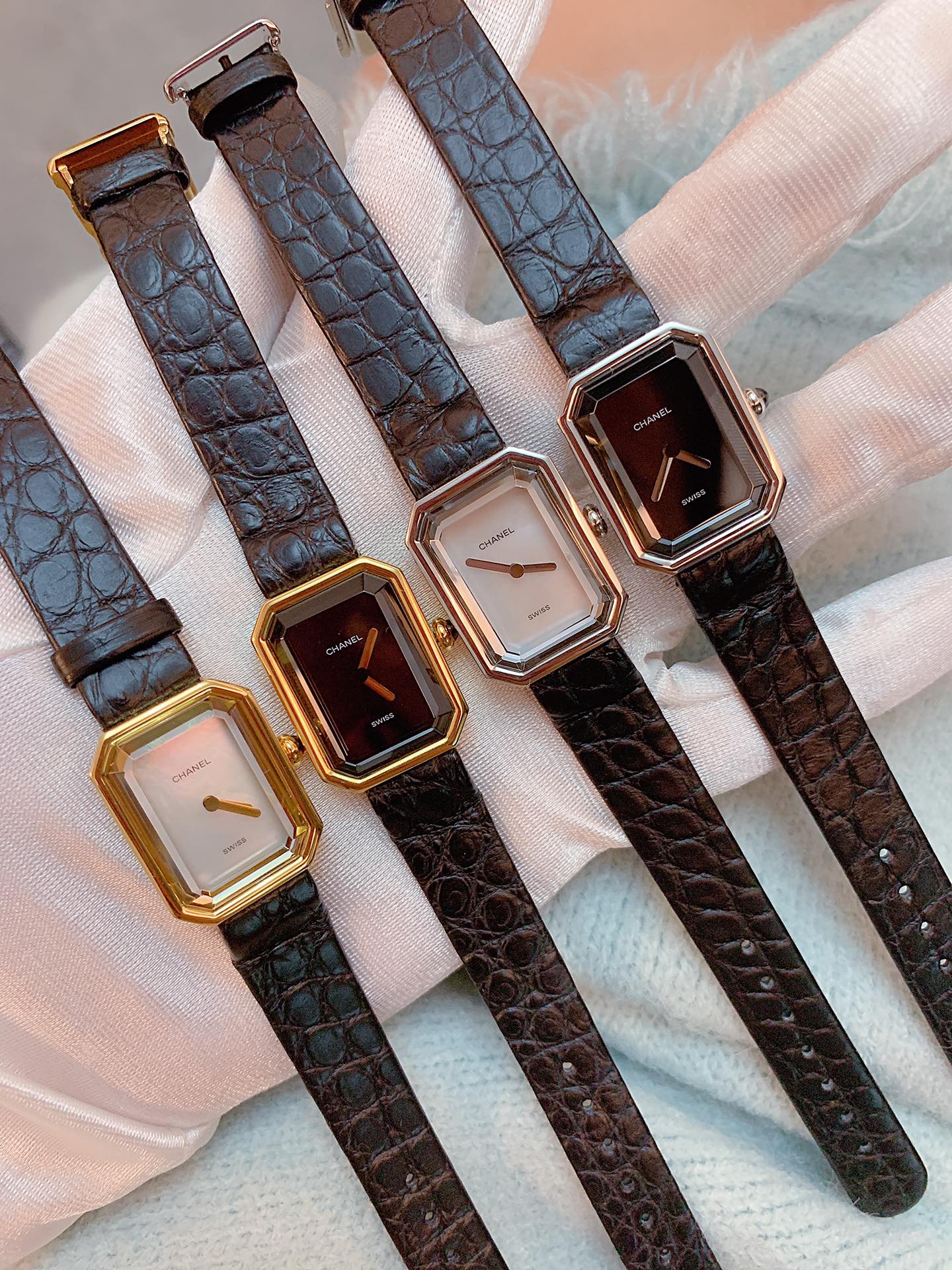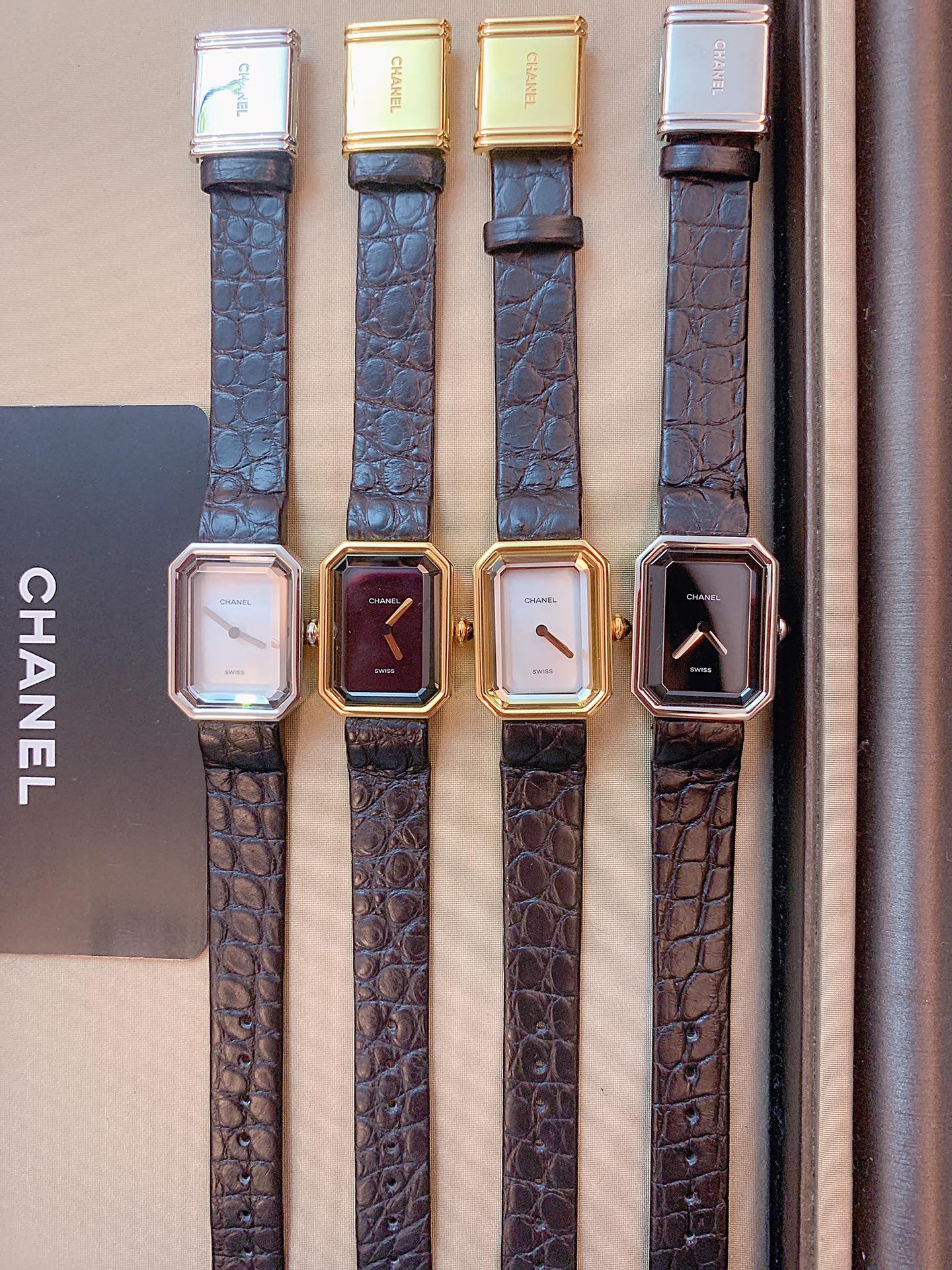 Chanel Vintage Chanel Premiere It is not an exaggeration to say that it is the “No. 1 vintage watch”. In that era when there were only men’s watches, Chanel Premiere was the world’s first women’s watch. Chanel Premiere was born in 1987. It was a watch designed by Chanel for Greta Garbo, a Hollywood actress. He did not borrow the style of any men’s watch, but a unique women’s watch designed for women. There is no second hand, no numbers, and no time scale on the dial, allowing you to feel the time as you like. The case has an octagonal outline that is exactly the same as the shape of Place Vendôme in Paris. This timeless and perfect design model echoes the soft and charming characteristics of the watch. It can not only be worn as a watch, but also be worn with a bracelet, which is fashionable and explosive, and can add a sense of luxury to any outfit. In addition to the black and gold color scheme, there is also a black and silver color scheme. The gold color is more elegant and classic, while the silver color is more everyday and cool. If you are a fan of vintage, especially Chanel Vintage, then this watch must be on your must-buy list; Choco Bar can be paired with a basic white shirt, a classic little black dress, or even a dark leather jacket. The black and gold sugar cube watch is also very eye-catching!