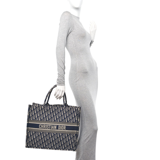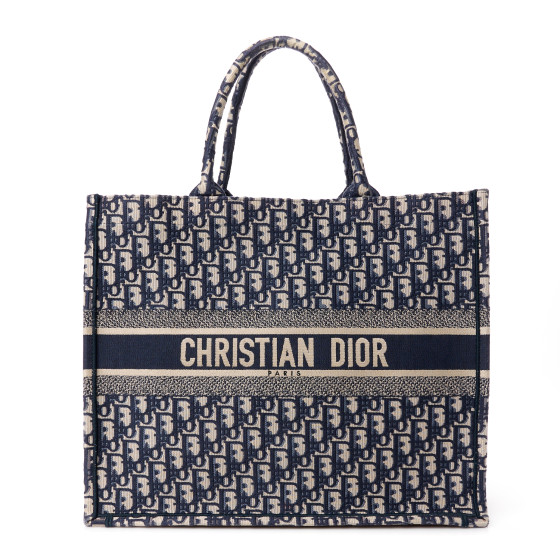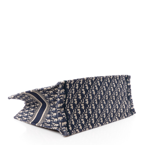 This is an CHRISTIAN DIOR Oblique Large Book Tote in Blue and Multicolor. This lovely tote is crafted of classic Oblique print canvas in navy and beige. The bag features rolled canvas top handles and a CHRISTIAN DIOR logo embroidered on the front. The top is open to a spacious matching fabric interior.