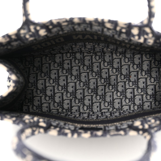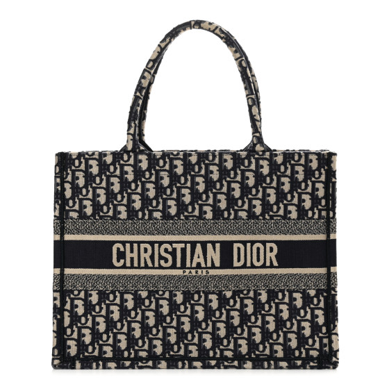 This is an CHRISTIAN DIOR Oblique Medium Book Tote in Blue Multicolor. This lovely tote is crafted of classic oblique canvas in navy and beige. The bag features rolled canvas top handles and a CHRISTIAN DIOR logo embroidered on the front. The top is open to a spacious fabric interior.