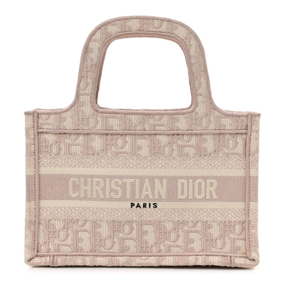 This is an CHRISTIAN DIOR Oblique Mini Book Tote in Rose Des Vents and Multicolor. This lovely tote is crafted of the classic Oblique print canvas in pink and beige. The bag features CHRISTIAN DIOR embroidered on the front and opens to a fabric interior.