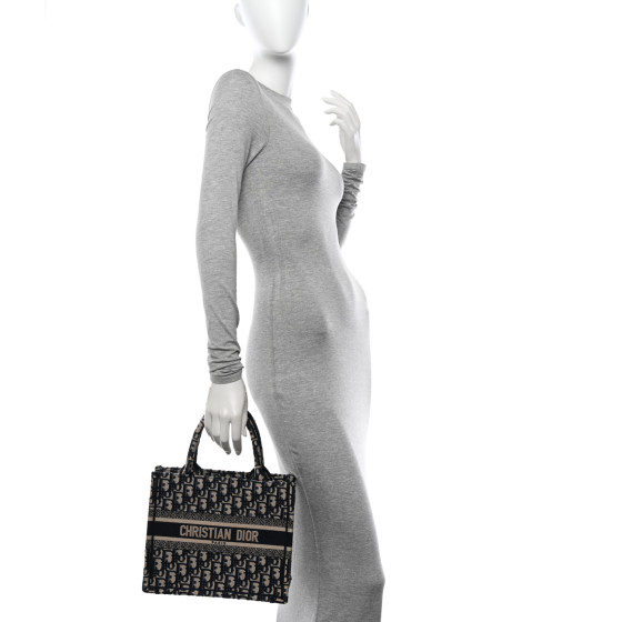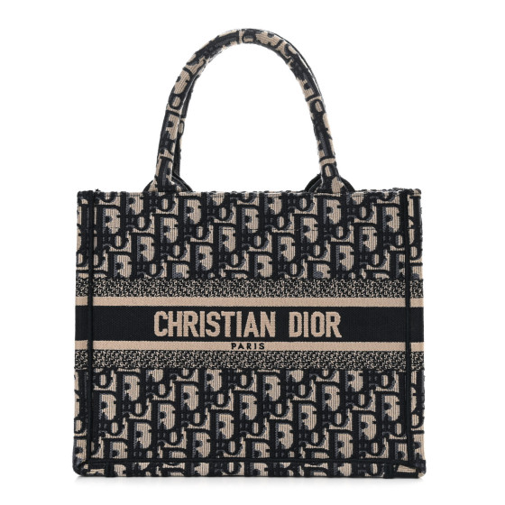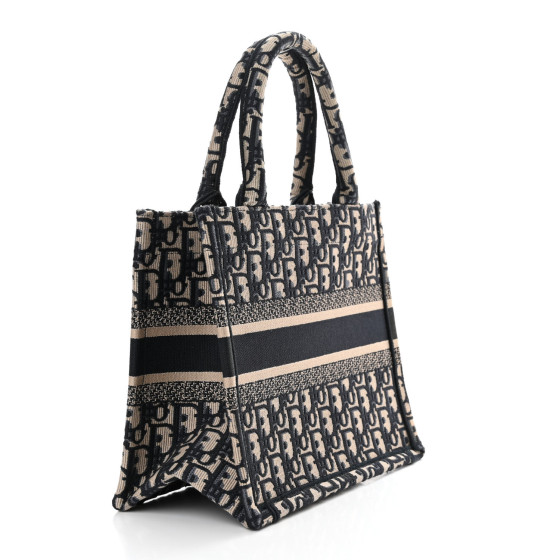 This is an CHRISTIAN DIOR Oblique Small Book Tote in Blue and Multicolor. This lovely tote is crafted of classic Oblique print canvas in navy and beige. The bag features rolled canvas top handles and a CHRISTIAN DIOR logo embroidered on the front. The top is open to a spacious fabric interior.