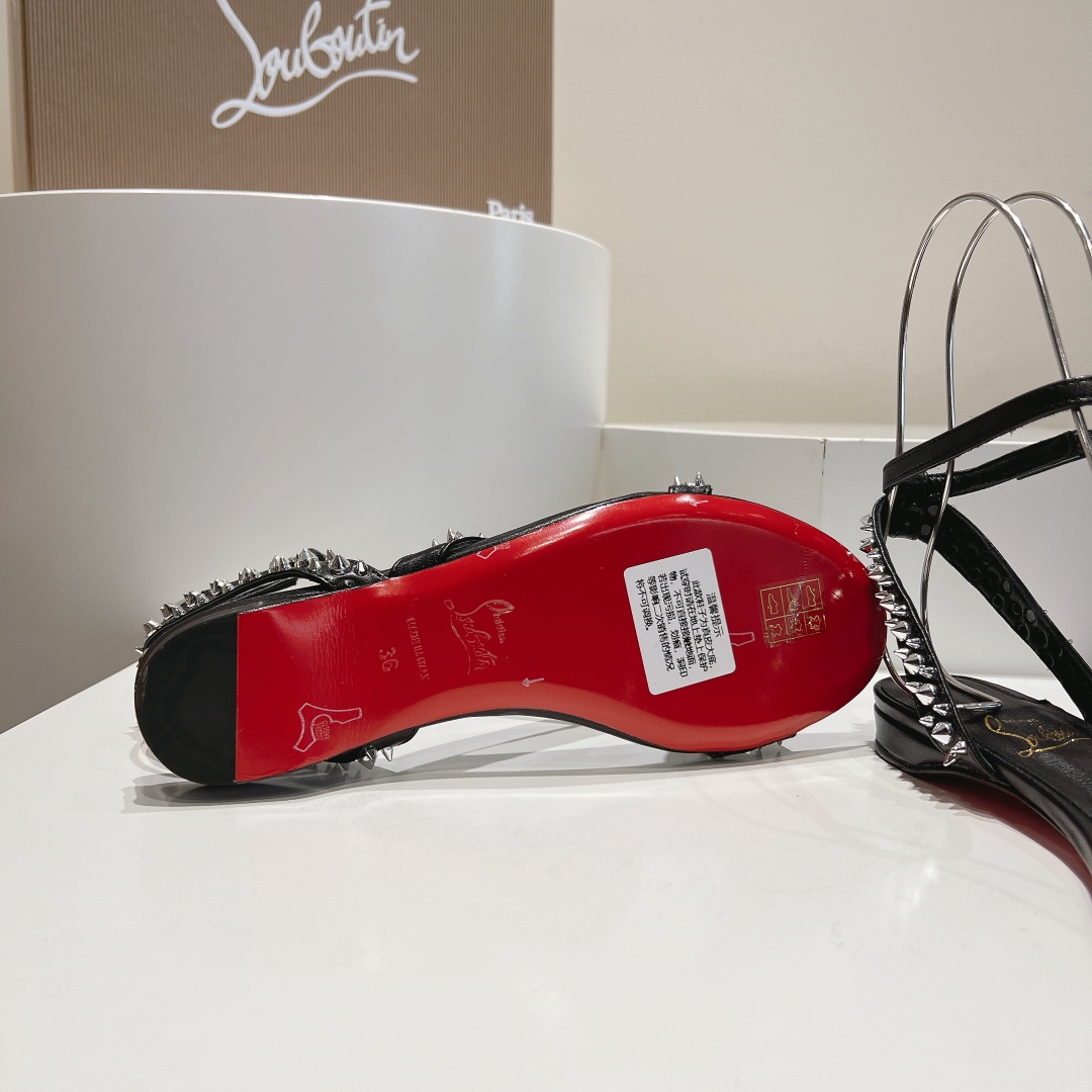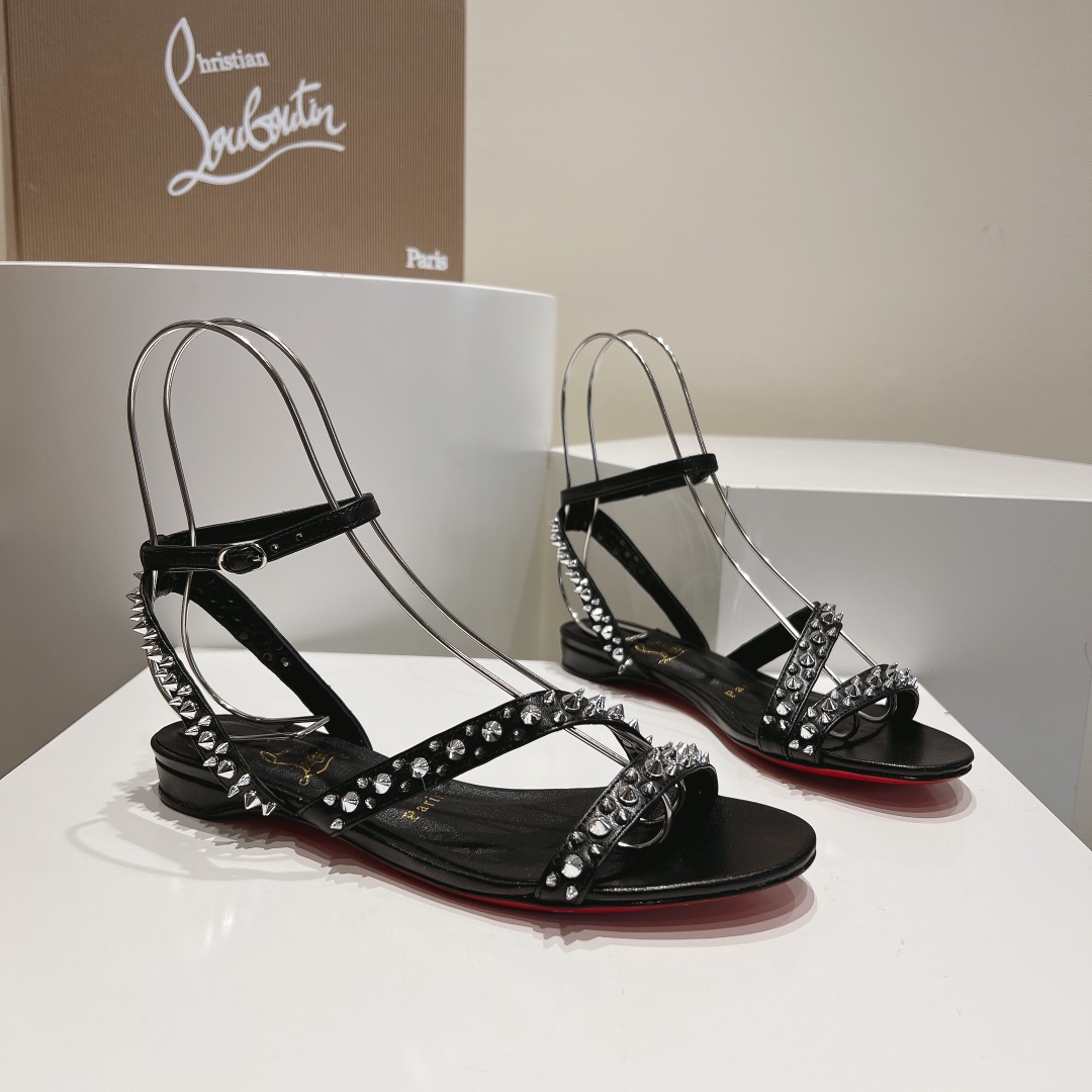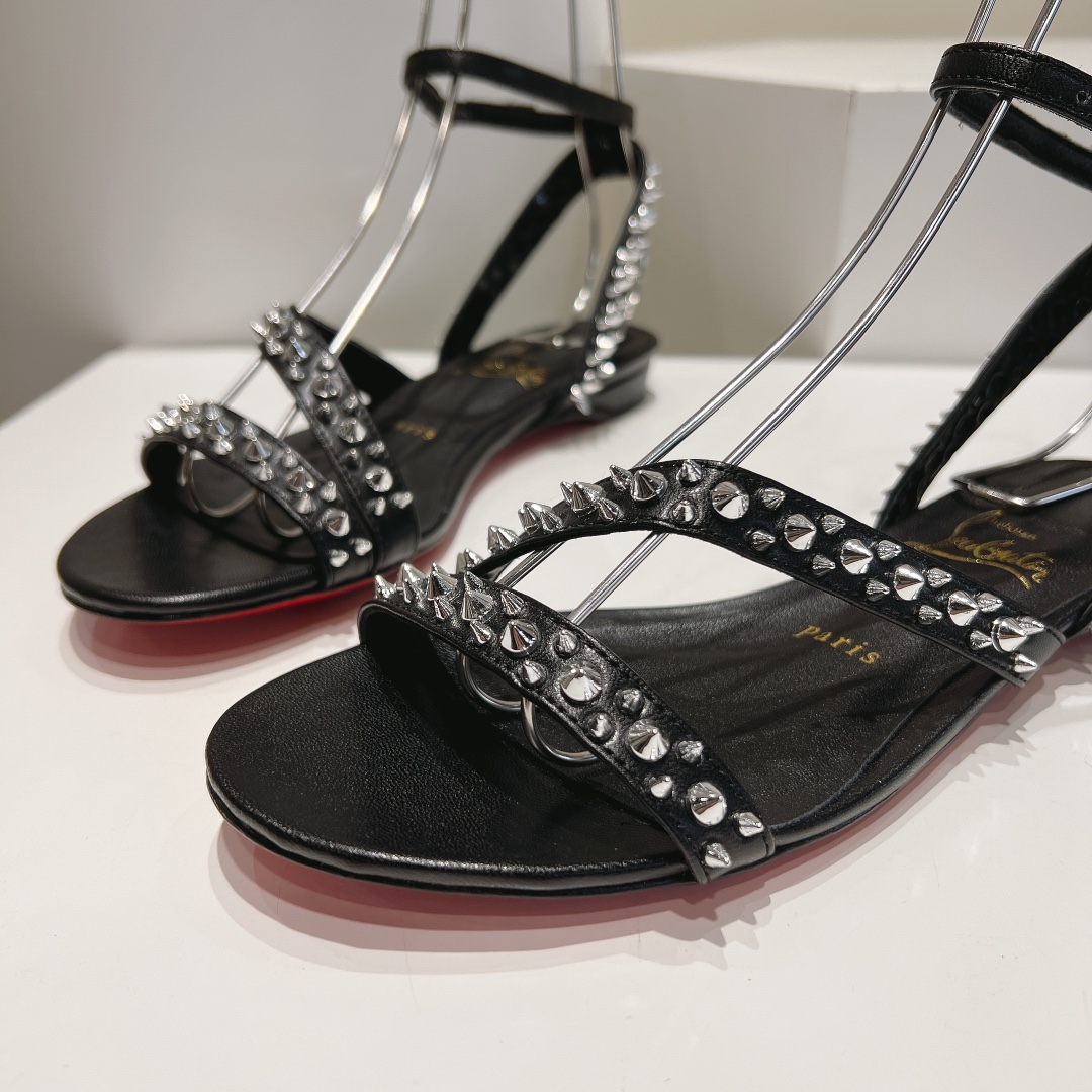 Be the first to review “Christian Louboutin Lu Boting oblique strap rivet flat sandals black”