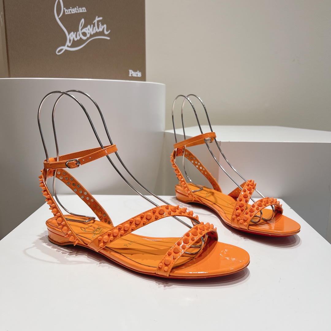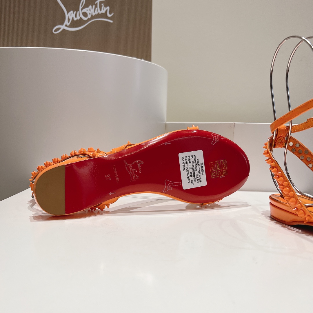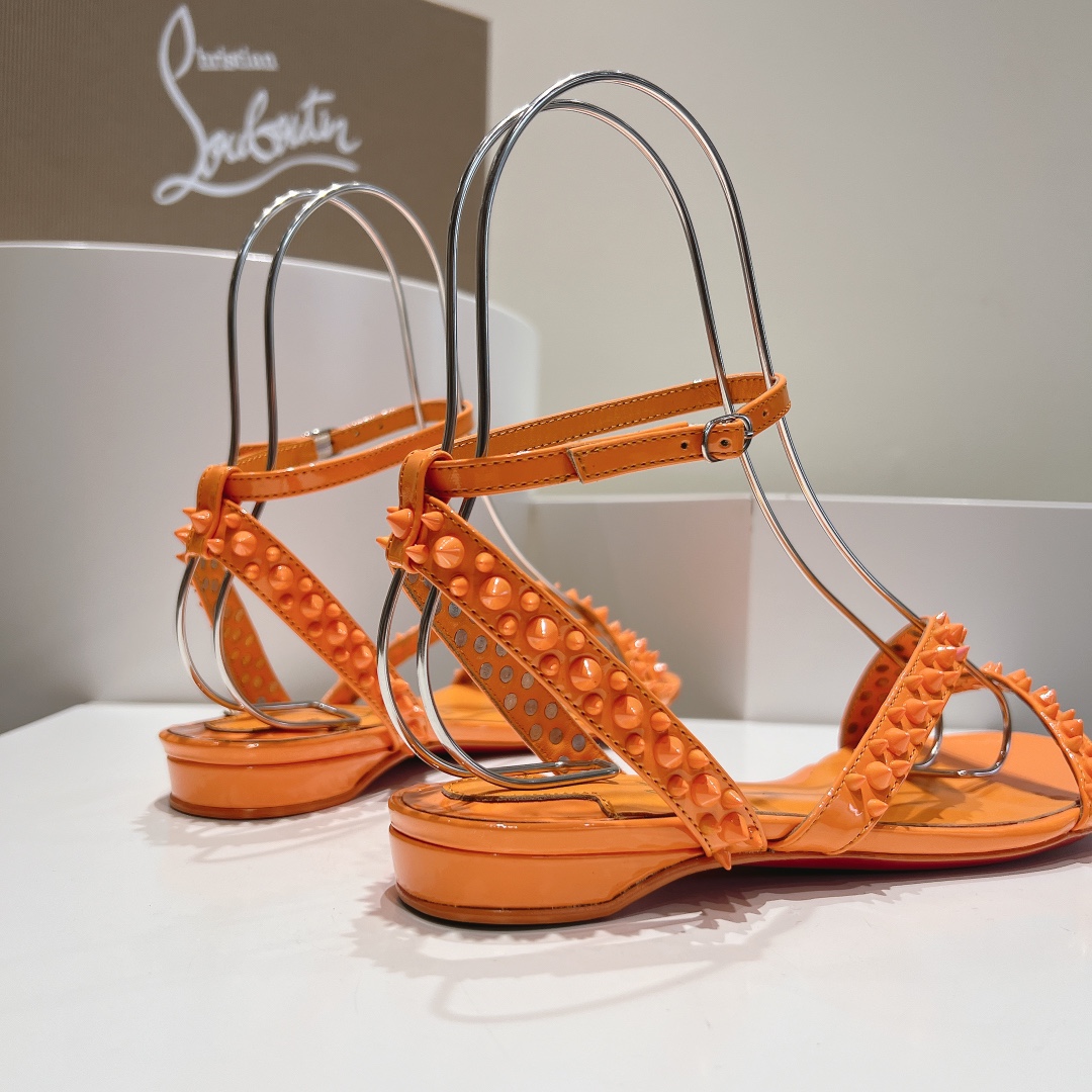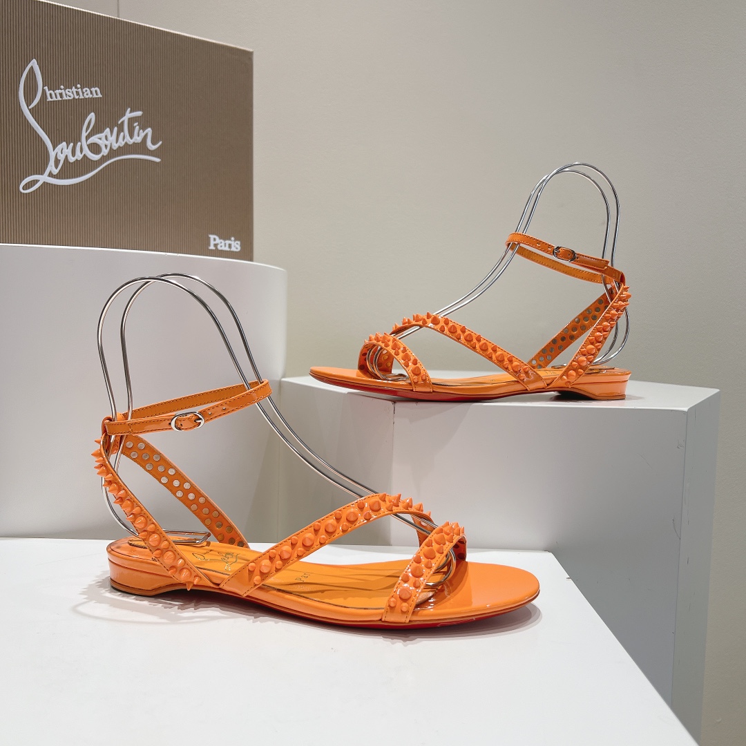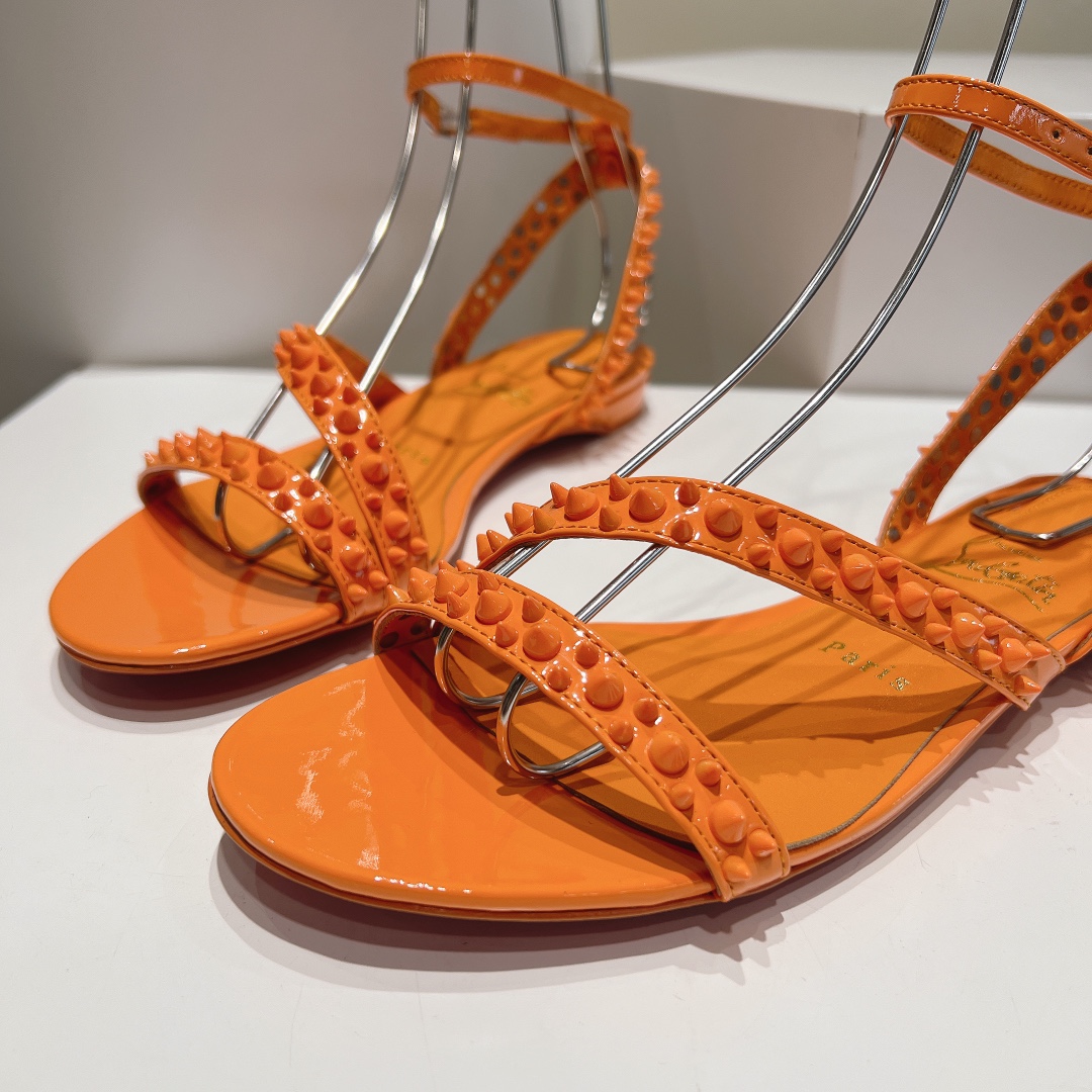 Be the first to review “Christian Louboutin Lu Boting oblique strap rivet flat sandals orange”