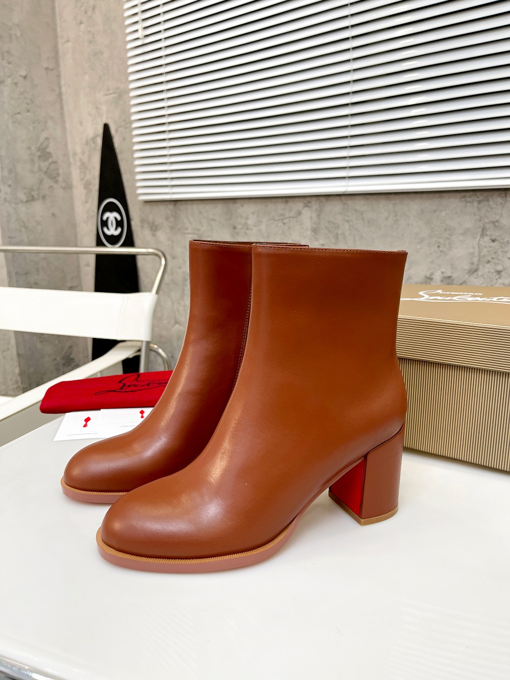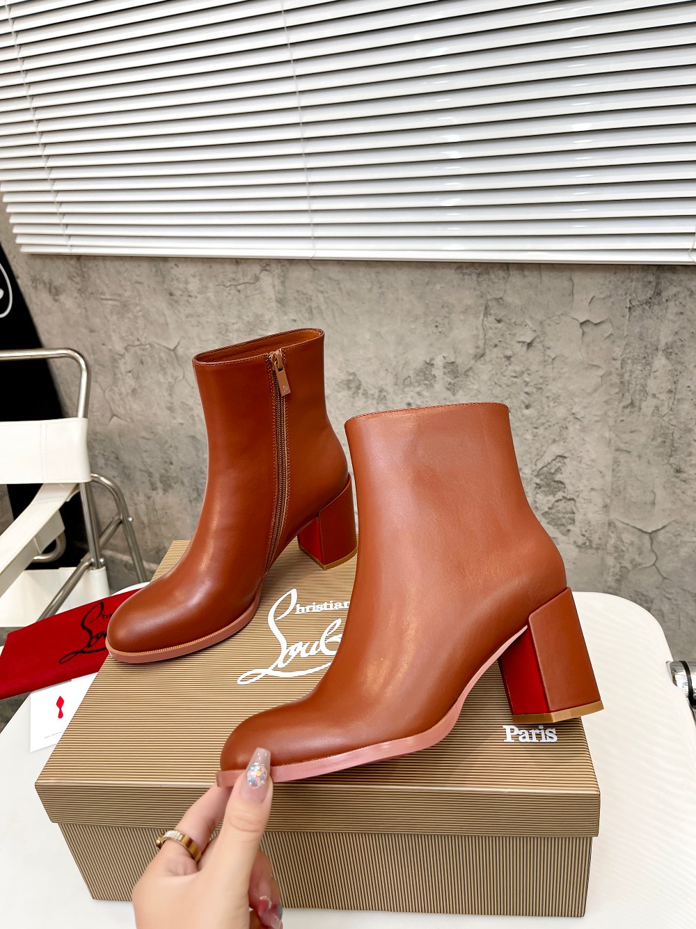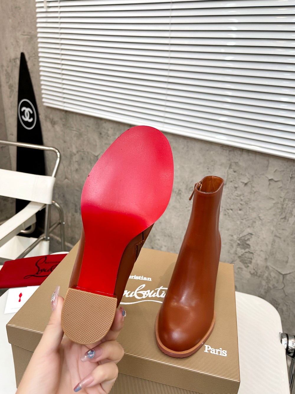Christian LouboutinCL is made of shiny calfskin, simple and stylish, with a shaft height of 4 inches (12cm)