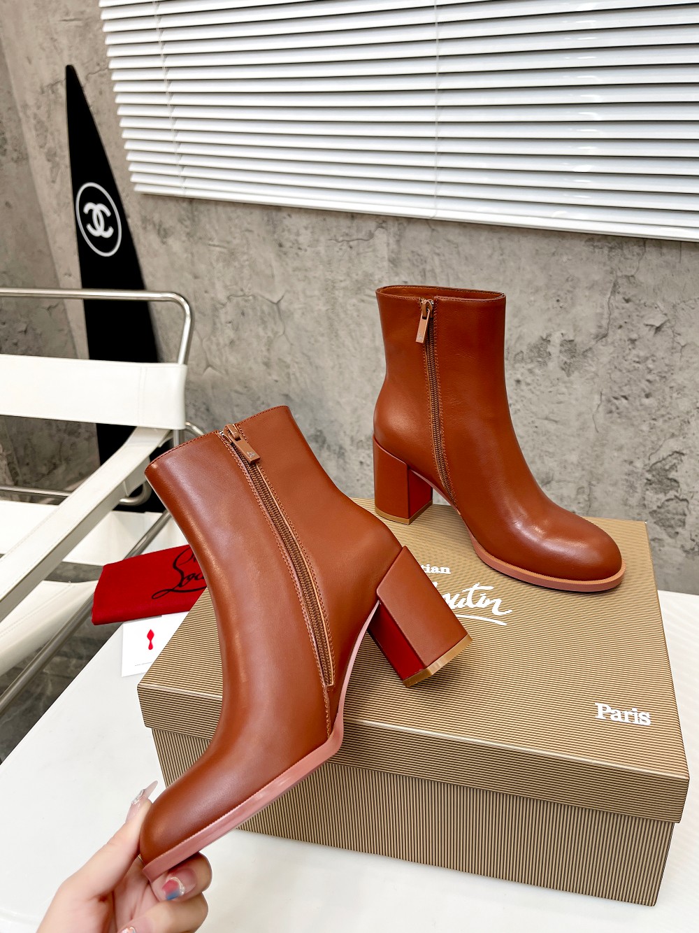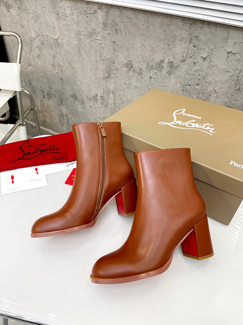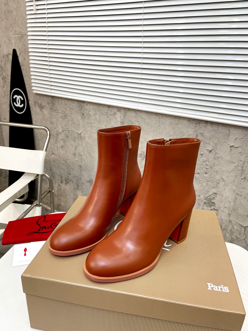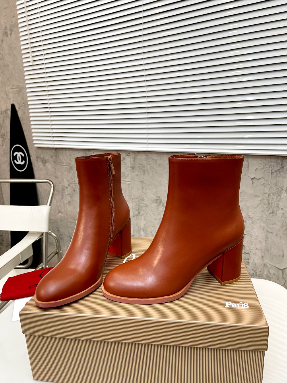 Christian LouboutinCL is made of shiny calfskin, simple and stylish, with a shaft height of 4 inches (12cm)