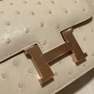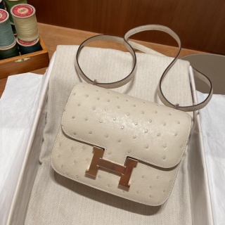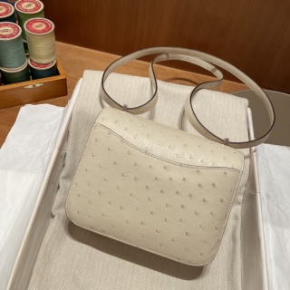 Constance Ostrich Leather 18cm i2 Cream White with Rose Gold Buckle