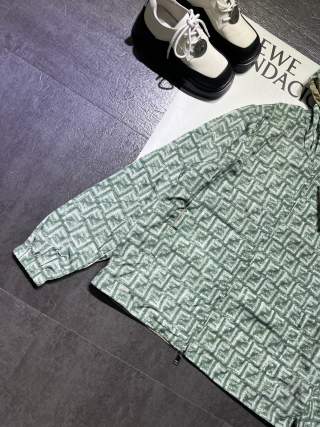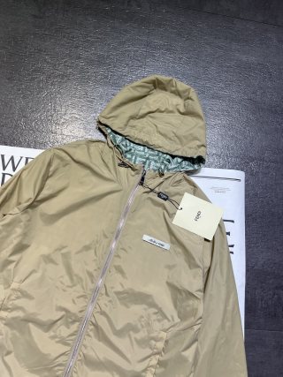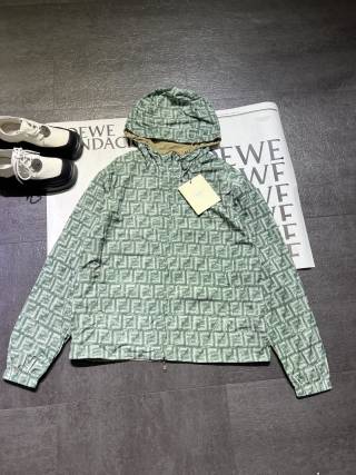 Double zipper FF printed green nylon double-sided jacket, wear both sides, wear more than one coat, custom printed fabric