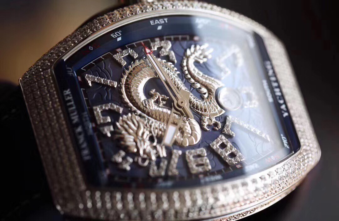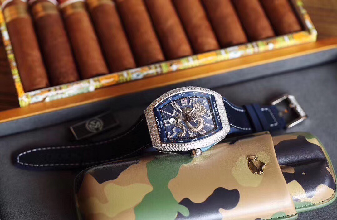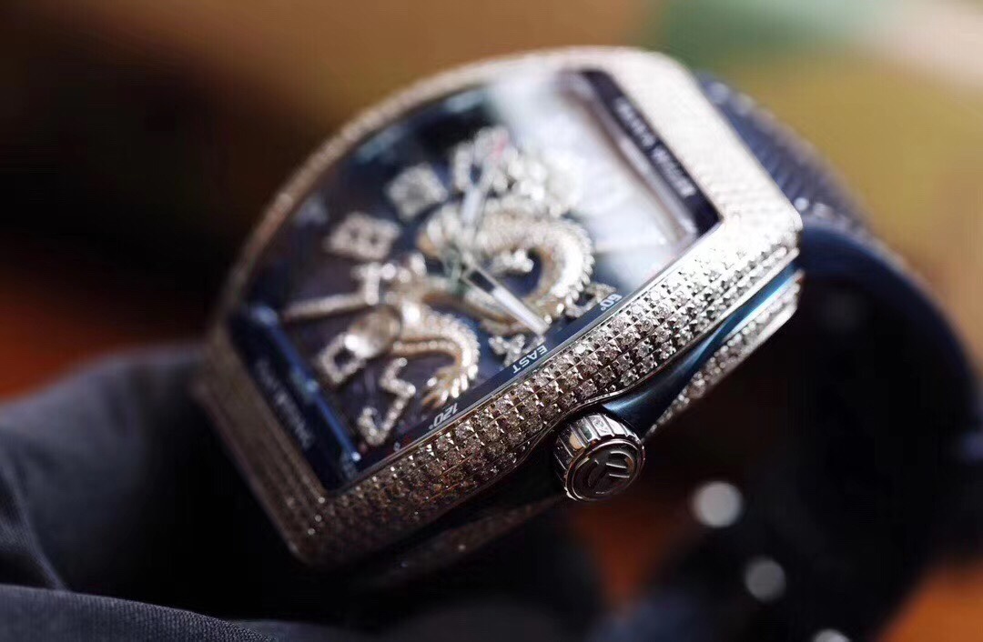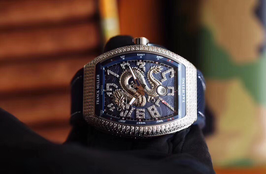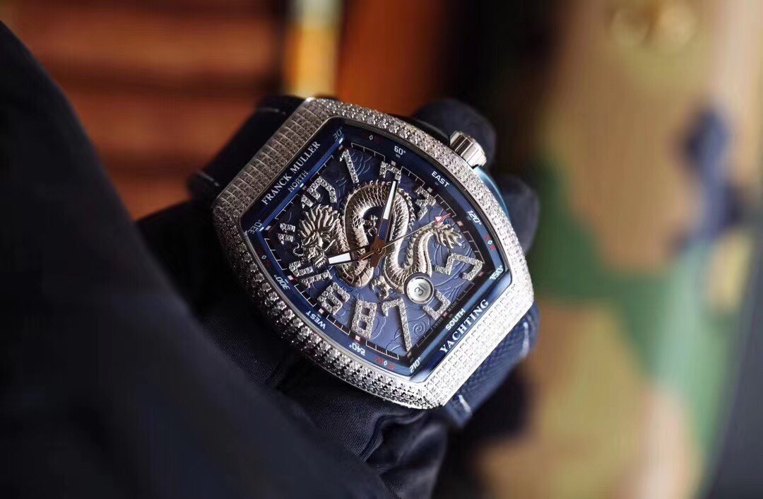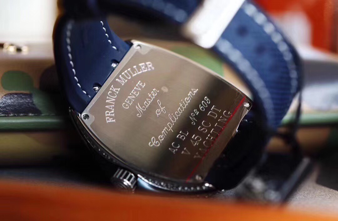 Franck Muller FM Vanguard Yachting V45 Yachting Series 44×54 mm1. The case is 100% original mold, especially the sandwich structure case. The blue side groove on the inner middle and the protruding blue lugs on the crown make the production process of the case even more difficult. Then it took more than 10 months and multiple initial proofreadings before it was finally successfully developed and produced. It is made entirely of 316 stainless steel, rather than the low-cost plastic molds on the market. 2. This version of V45 blue yacht lettering, each letter is made of the original 1:1 height digital concave edge filled with oil real letter, which is costly, complex to make and has a low yield rate. There is a magnifying glass gasket layer under the lettering, and the calendar window also uses a sapphire magnifying glass to always maintain the same requirements as the original and strive for excellence. 3. Using super-large curvature, ultra-high-definition and light-transmitting sapphire crystal glass, made of a whole piece of 40*50mm sapphire material with a thickness of more than 15mm, 100% carefully ground according to the curvature of the case, with a high scrap rate The yield rate is extremely low 4. The diamond-studded version uses the original mold for the buckle, which is consistent with the original V45 starry sky, and is more convenient to wear, and restores the original to the greatest extent. The smooth shell version uses a folding snap button, which is consistent with the original version 5. The bent hands fit the dial, and are matched with the ETA2824 movement with a high-frequency amplitude of 28800, which has accurate timekeeping, stable quality, and a curved case design that fits the wrist. 6. The upgraded steel-head calendar high-grade rubber strap is softer and more comfortable. It is the only version on the market that can be used for the strap of the original watch, V45 Blue Yacht. Welcome your appreciation.