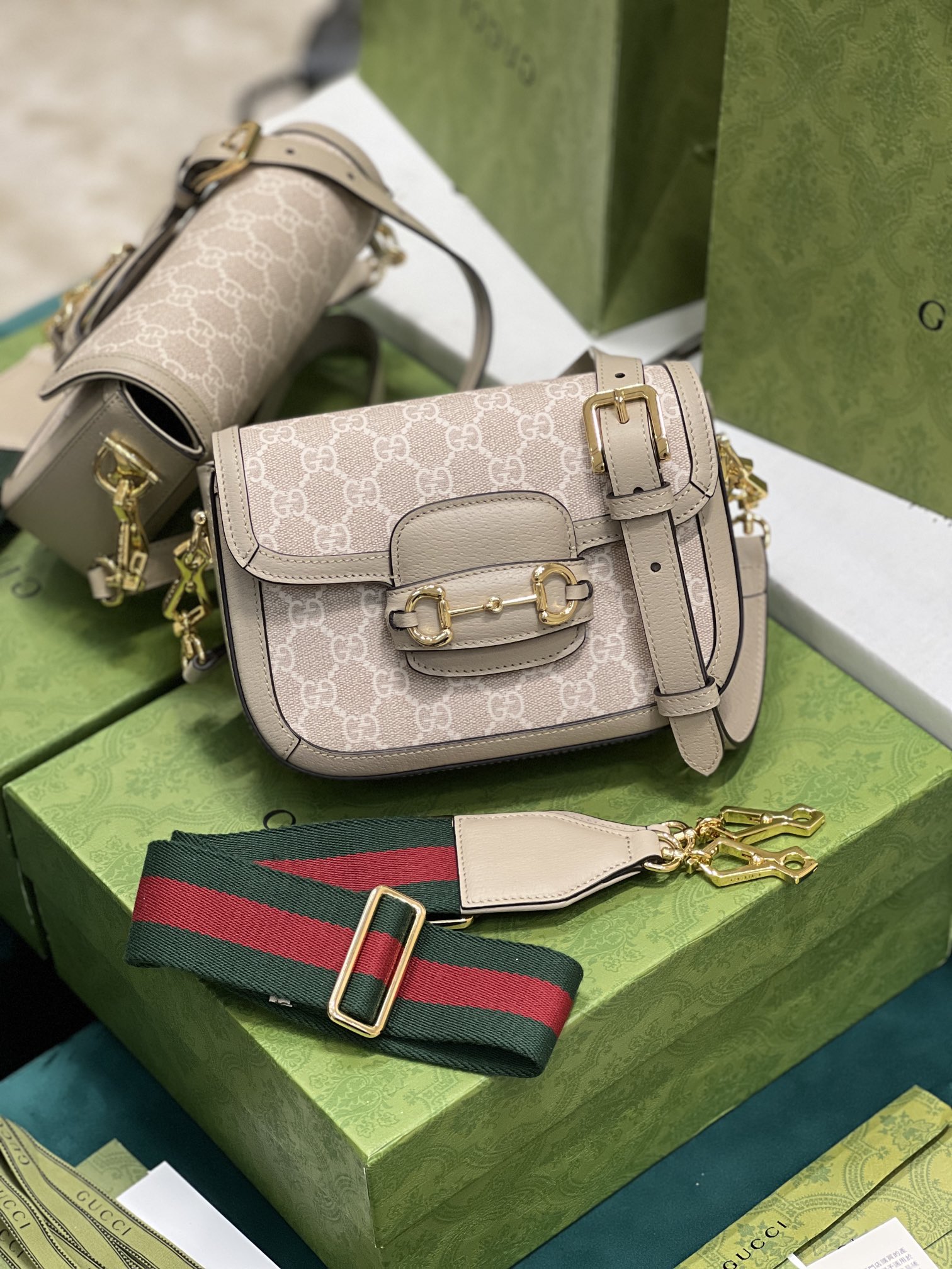 The Gucci Horsebit 1955 series mini handbags draw inspiration from the brand’s classic design, incorporating modern essence into the classic design details of more than 60 years ago, giving the classic element of the horsebit a new charm. This design pattern is inspired by the brand’s equestrian origins. It consists of two elements, a double ring and a long strip. It has become one of the brand’s most recognizable iconic elements. The mini size and the interwoven double G letter pattern throughout the body add to the charm of the entire design.