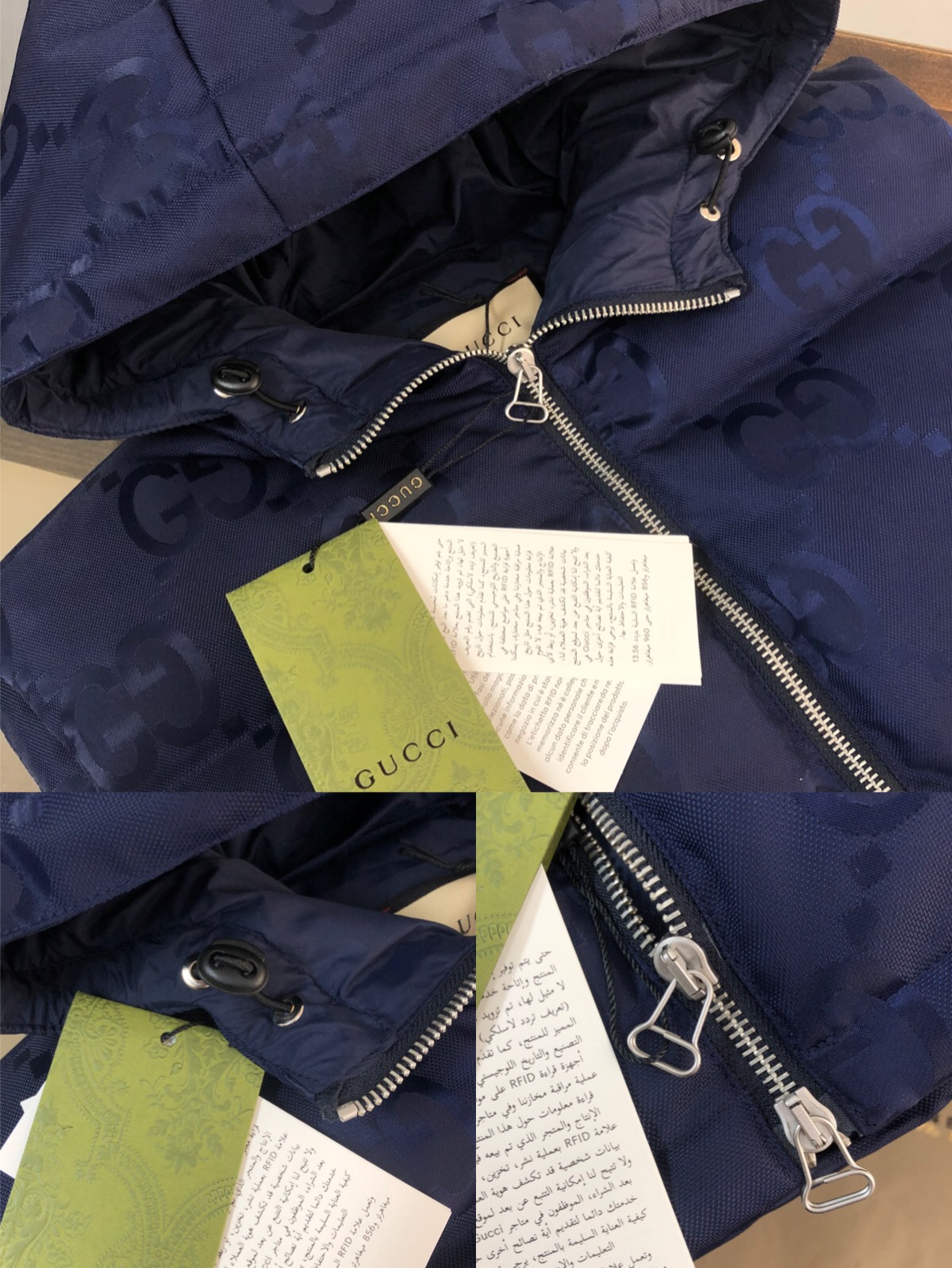This zippered down jacket is one of the newly launched accessories and ready-to-wear series. Recycled nylon is made of recyclable sewing thread and accessories, and the brand’s iconic GG pattern elements are on the whole body of the jacket. The fabric is full of luster and the perfect hardware is originally developed. It is really a rare treasure. Filled with 90% white duck down