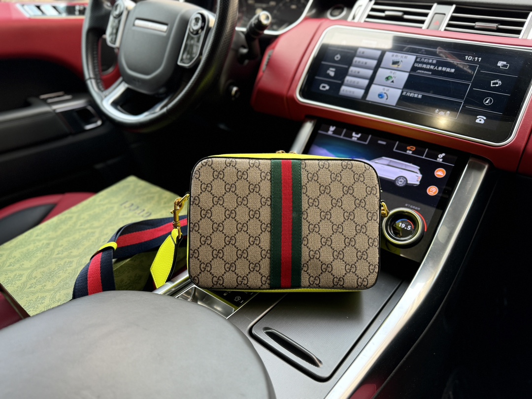 Signature double G pattern print Canvas with leather trim Canvas crossbody shoulder bag Clutch Regular Men’s High-definition hardware logo, inner compartment! Special lining. Smooth zipper, exquisite workmanship, every detail is in place! A must-have for men. Specifications: 23.5x16x4.5cm. Comes with a foldable gift box