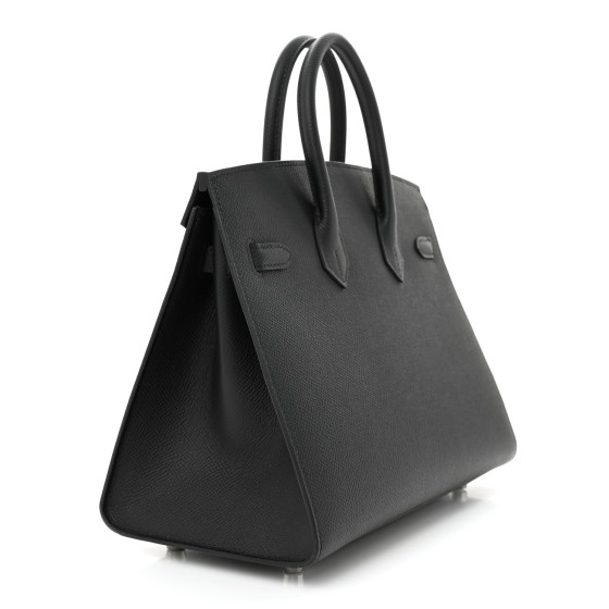 This is an authentic HERMES Epsom Birkin Sellier 25 in Black. This rare Sellier model is expertly constructed of epsom calfskin leather in black. This bag features rolled leather top handles, a front flap and strap closure and polished palladium hardware including a turn lock, a padlock and a clochette for 2 keys. This opens to a matching chevre goatskin leather interior with pockets.