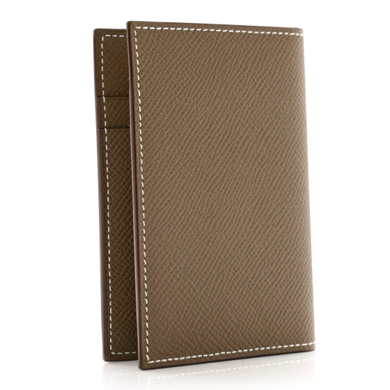 This is an HERMES Epsom MC2 Euclide Card Holder Case in Etoupe. This stylish wallet is beautifully crafted of Epsom leather in dark beige. The wallet opens to a textured leather interior with card slots.
