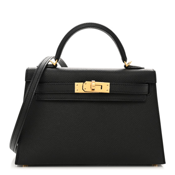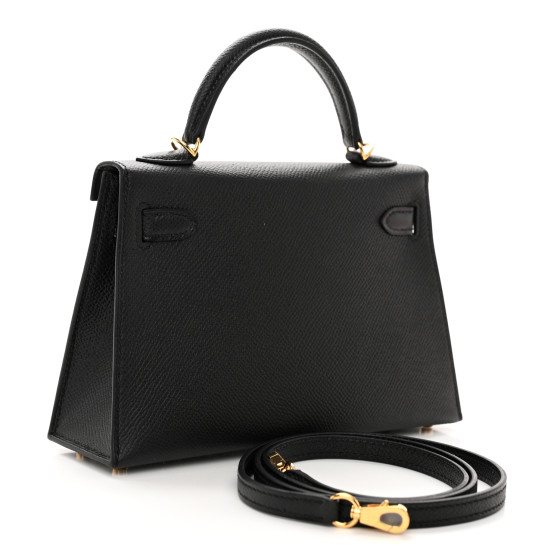 This is an authentic HERMES Epsom Mini Kelly Sellier 20 in Black. This stunning Hermes classic handbag is beautifully crafted in stamped Epsom calfskin leather in classic black. A single rolled leather top handle is secured with gold-plated hardware and an optional leather shoulder strap is included. The traditional Kelly turn-lock secures the small flap. The interior is composed of soft lambskin leather and features one flat pocket.