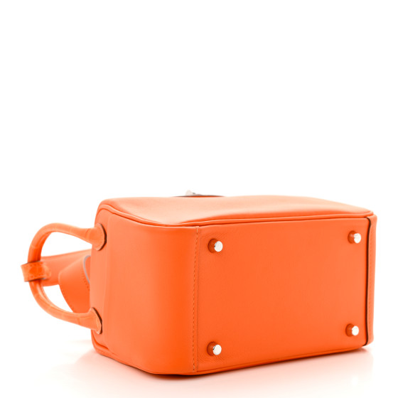 This is an HERMES Matte Alligator Swift Mini Touch Lindy 20 in Orange. This chic shoulder bag is crafted of luxurious swift calfskin leather. The bag features rolled alligator top handles on either side, a matching crossbody strap, and a zippered top flap with a palladium plated turn-lock closure.