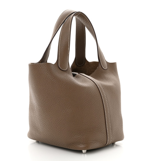 Be the first to review “HERMES Taurillon Clemence Picotin Lock 18 PM Etoupe”