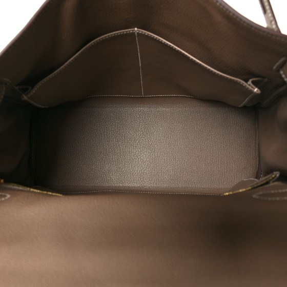 This is an authentic HERMES Togo Kelly Retourne 32 in Etoupe. This chic Kelly handbag tote is crafted of Togo calfskin leather in grey-toned beige. The bag features a rolled leather top handle, an optional leather shoulder strap, gold plated links, and a leather strap closure with gold plated turn lock. This opens to a goatskin leather interior with zipper and patch pockets.