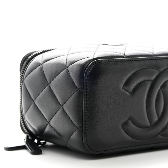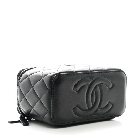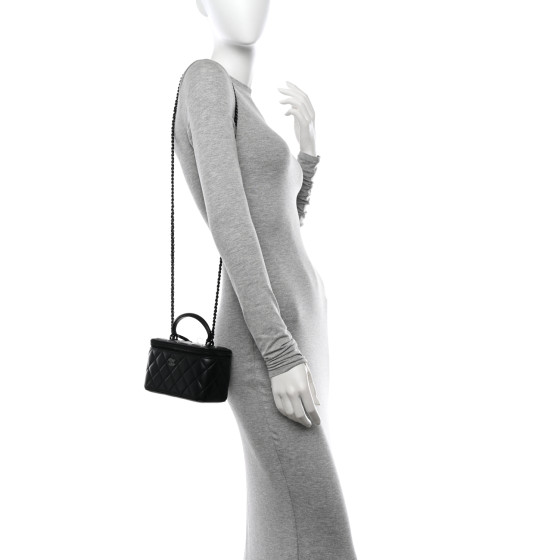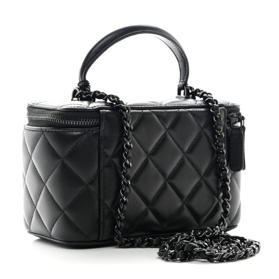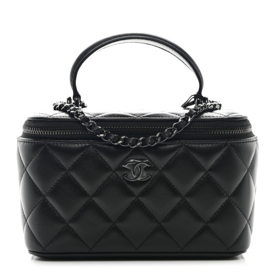 Be the first to review “Lambskin Quilted Small Top Handle Vanity Case With Chain So Black”