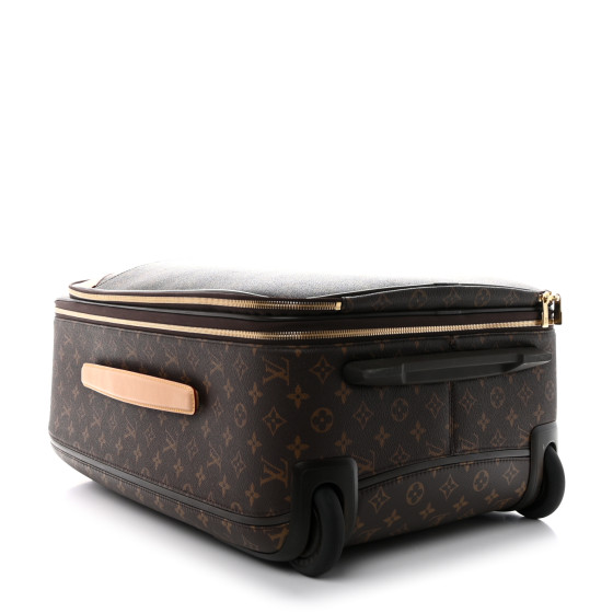 This is an LOUIS VUITTON Monogram Pegase Legere Business. This stylish suitcase is finely crafted of classic Louis Vuitton monogram coated canvas. This rolling case features a deep front pocket with a hidden zipper pocket, vachetta cowhide leather trim, a reinforced top handle, a state of the art pull out handle and wheel mechanism and polished brass hardware. The 3/4 wrap-around zipper opens to a brown fabric interior with a velcro partition flap complemented by an ID card slot.