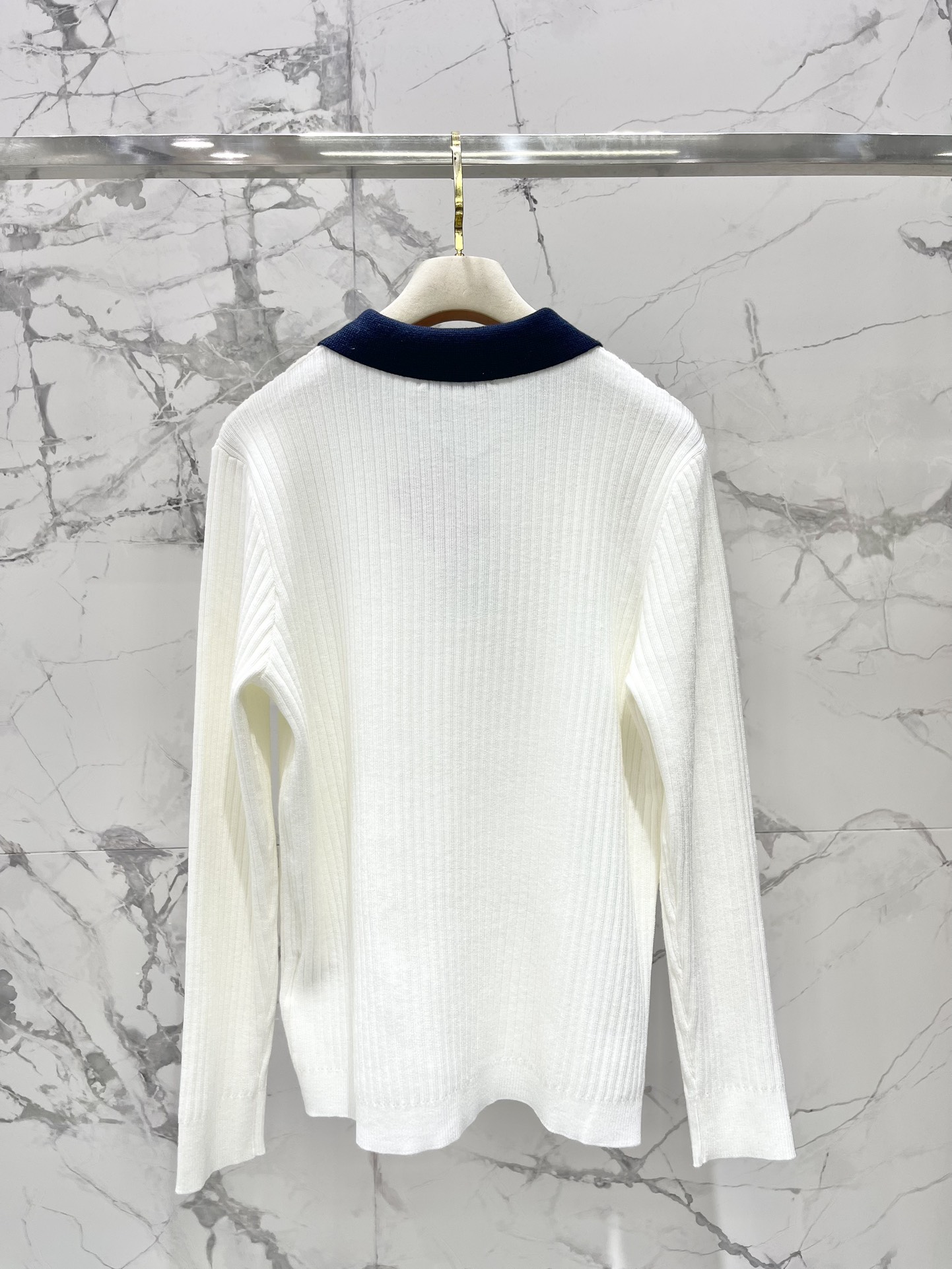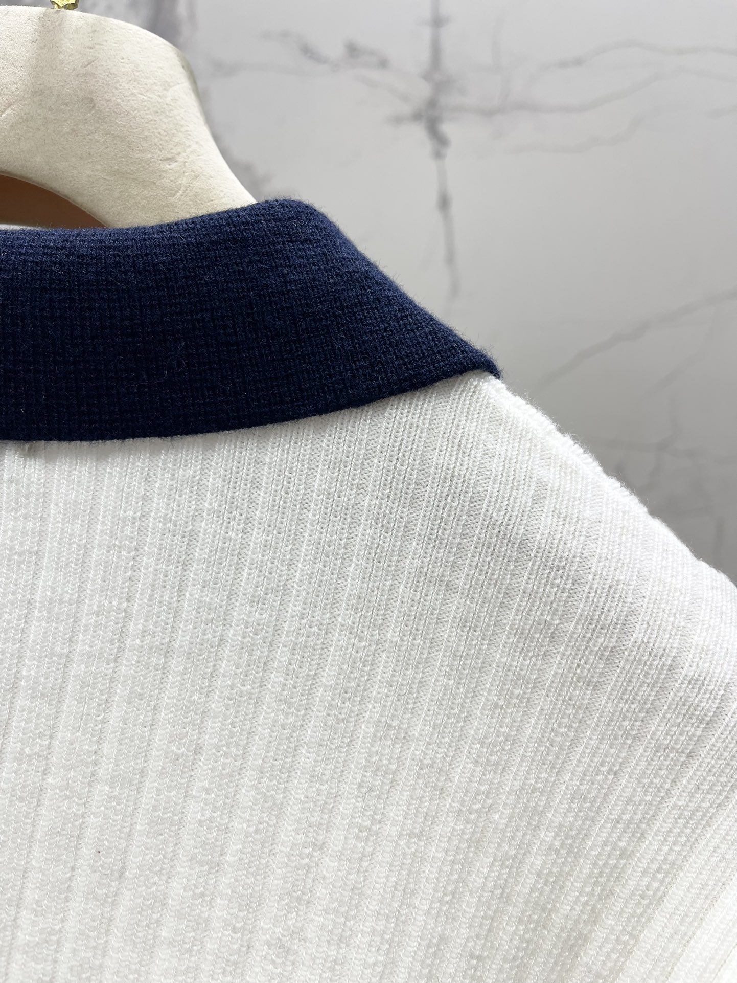 The design of this sweater is simply girly. The Polo collar and splicing elements make it retro yet playful.