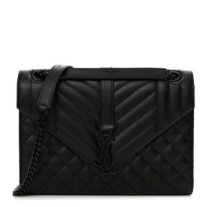 Saint Laurent Grain De Poudre Textured Mixed Matelasse Triquilt Small Monogram Satchel Black