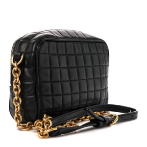 Saint Laurent Lambskin Carre Quilted Cassandre Mini Camera Bag Black